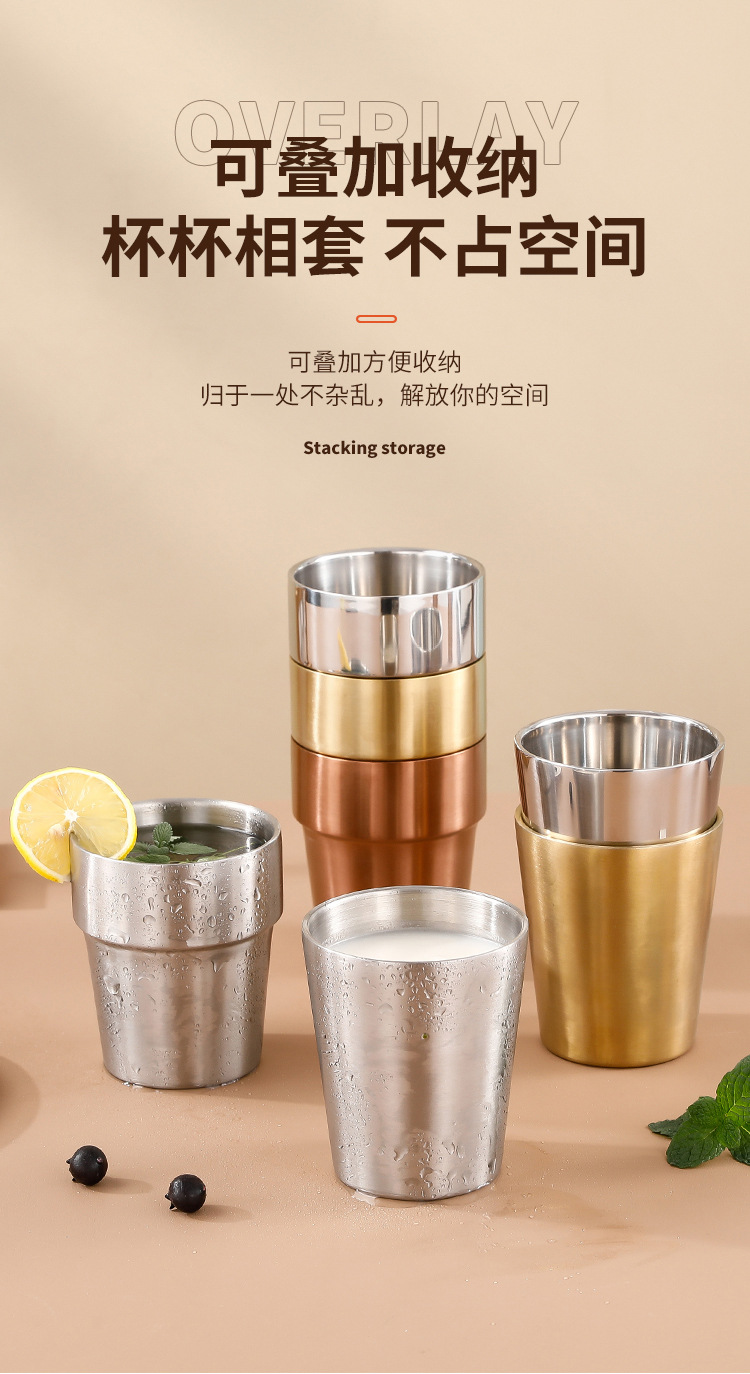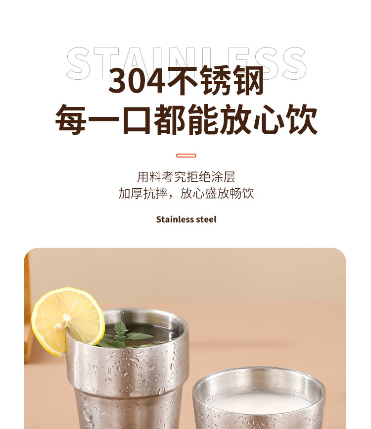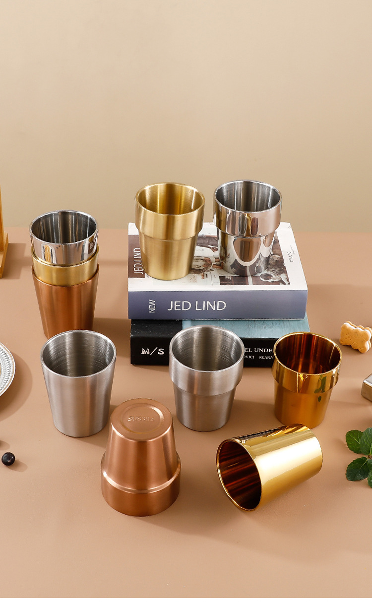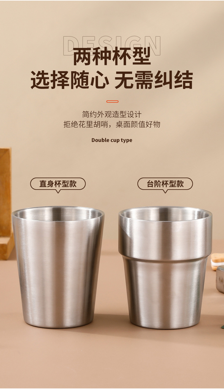 304不鏽鋼水杯 雙層馬克杯韓式杯兒童防燙特厚隨手杯辦公室溫水杯