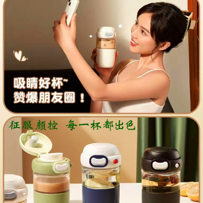 草莓生活雲豆玻璃杯茶水分離好泡茶情侶咖啡杯高顔值輕奢防燙杯