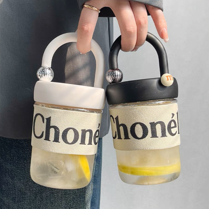 輕奢感手提咖啡玻璃杯小香風水杯防燙杯子女學生上班族耐高溫簡約