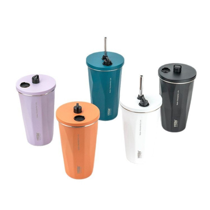 泰碩稜形吸管杯不鏽鋼保溫車用咖啡杯隨行情侶保溫保冷健身杯