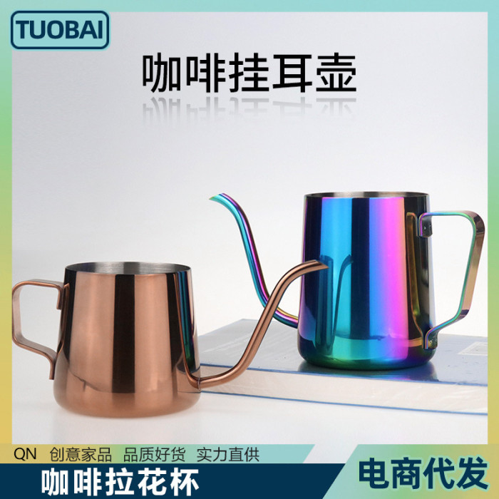 咖啡掛耳不鏽鋼細嘴滴濾彩色掛耳咖啡壺電陶爐咖啡沖茶壺拉花壺子