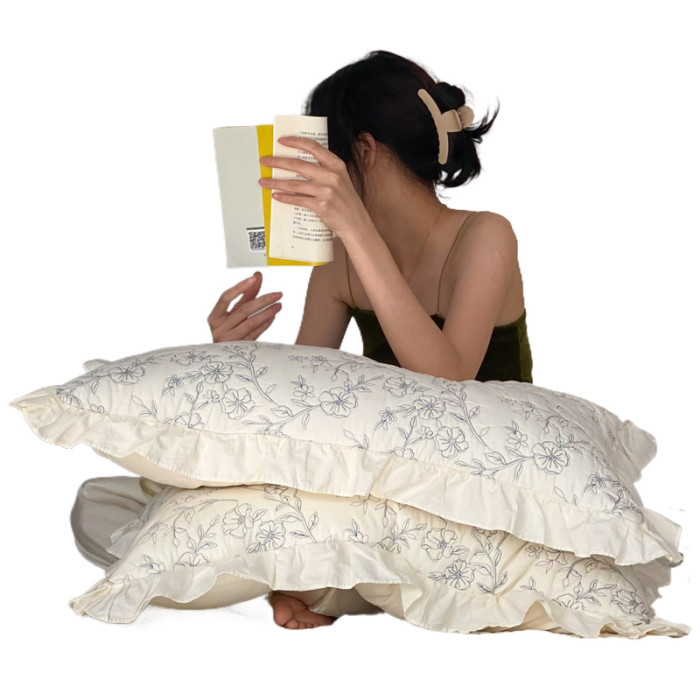 法式復古風純棉枕套夾棉密道絎縫全棉荷葉花邊枕皮74*48cm枕頭套
