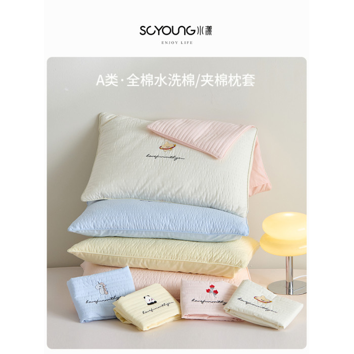 卡通A類全棉色織水洗棉夾棉枕套一對裝純棉雙人新款加厚枕頭芯套
