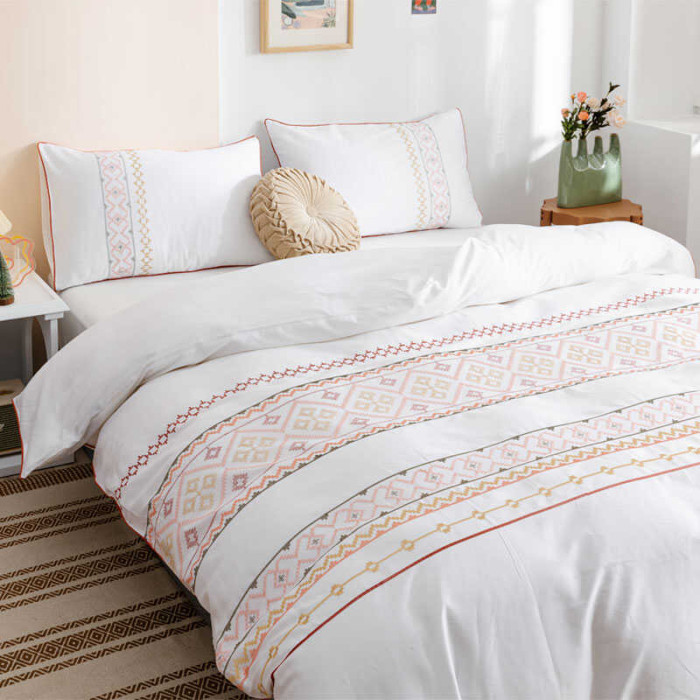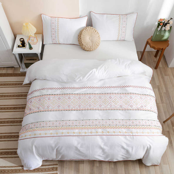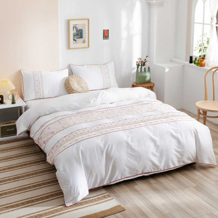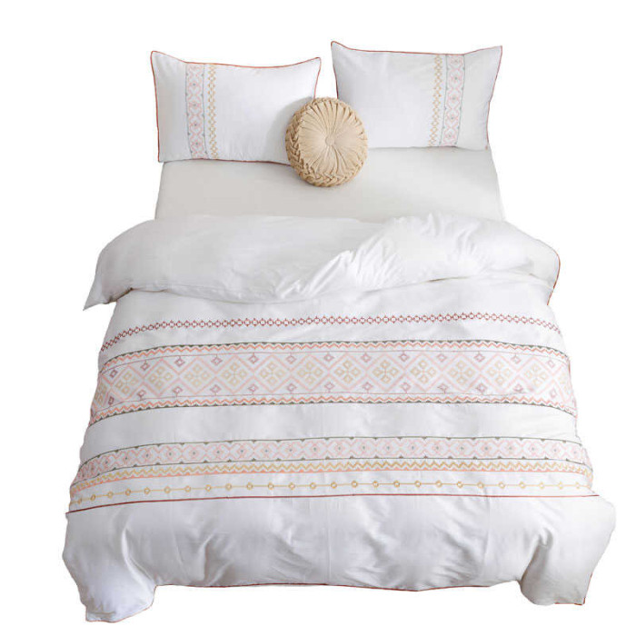 高級!尾單刺綉純棉被套單件100%全棉被罩枕套三件套床上用品