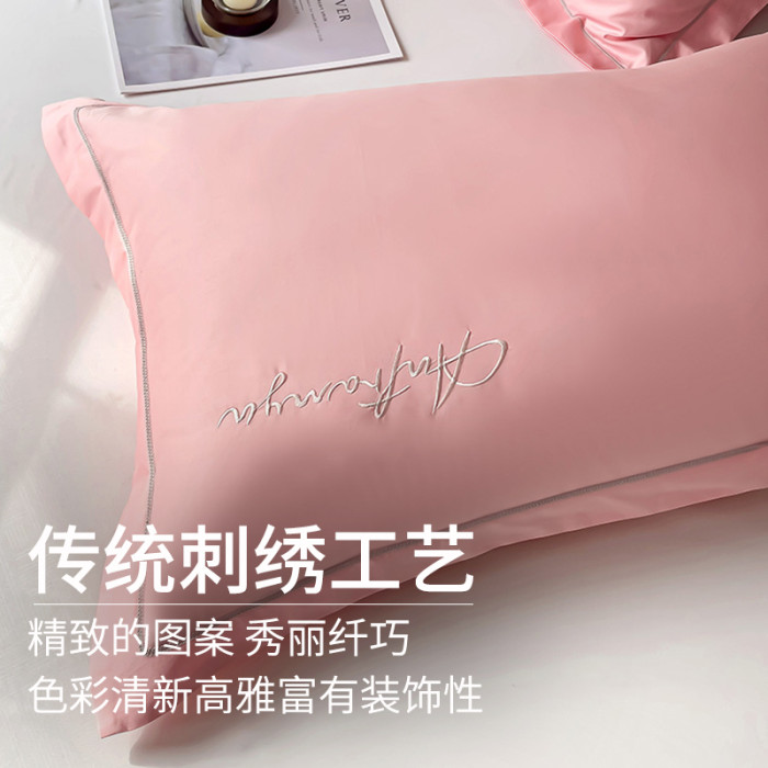 夏季澳洲100支長絨棉全棉純棉枕套一對裝家用純色刺綉枕頭套粉色