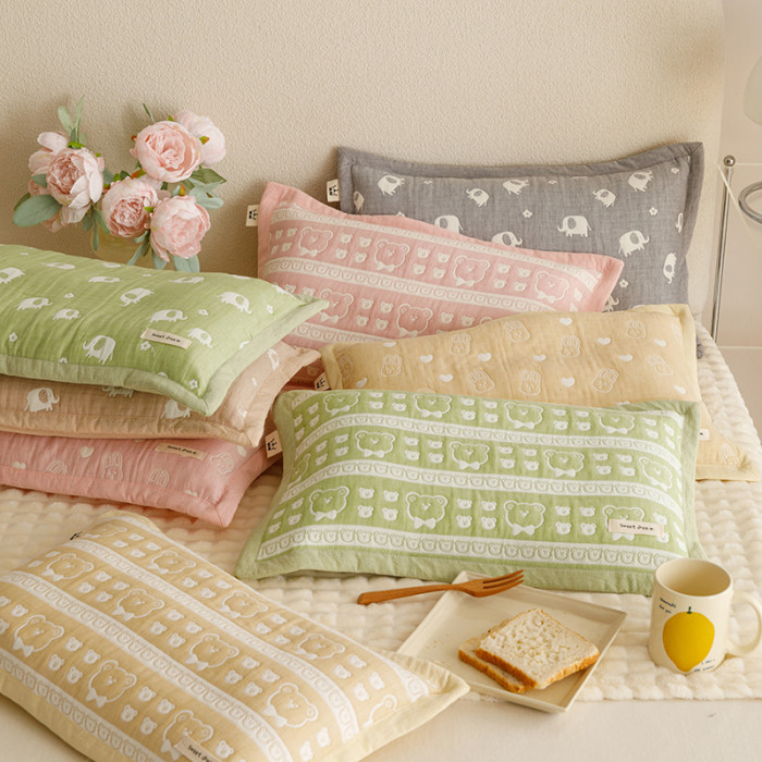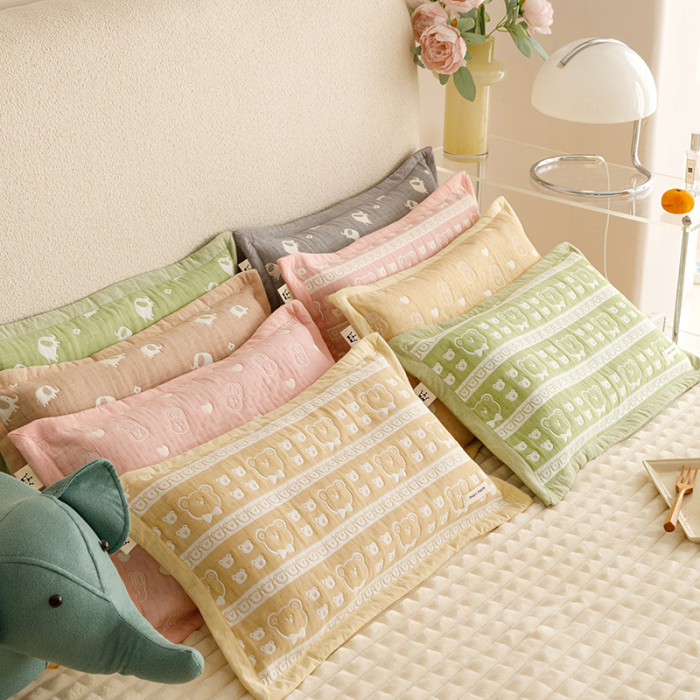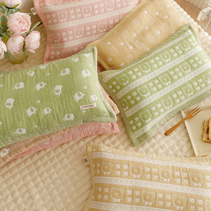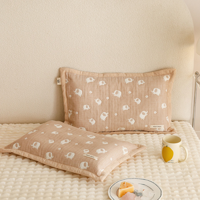 全棉三層紗布兒童枕套 單衹裝 寶寶小枕 純棉單人枕頭套48×74