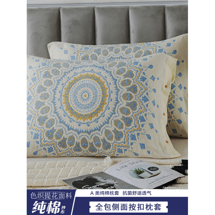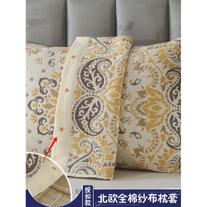 全包四季純棉紗布按釦枕套一對裝家用成人防滑加厚全棉枕巾枕頭套