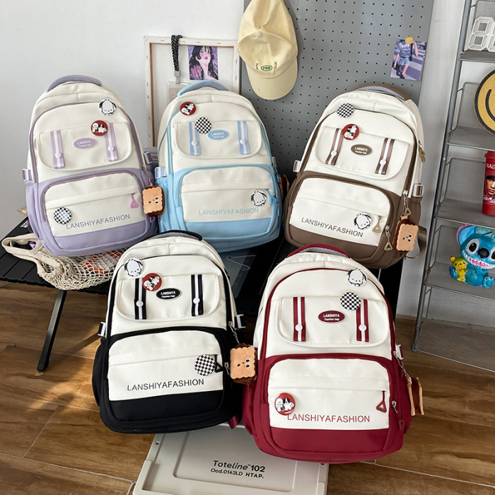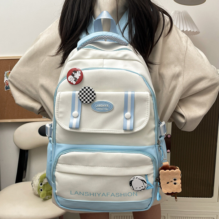 時尚輕便初中雙肩包女大容量休閒小學生上課書包輕便百搭通勤後背包