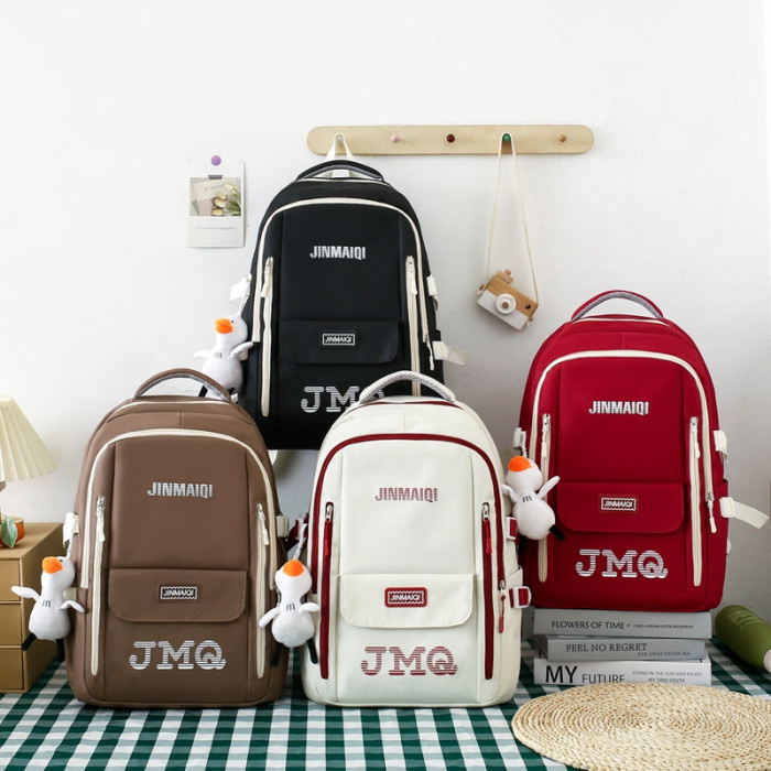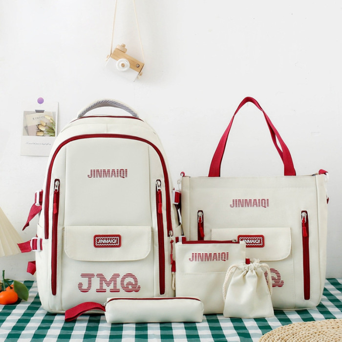 韓版ins風帆布雙肩包女高顔值休閒旅行後背包大容量五件套學生書包
