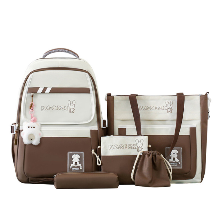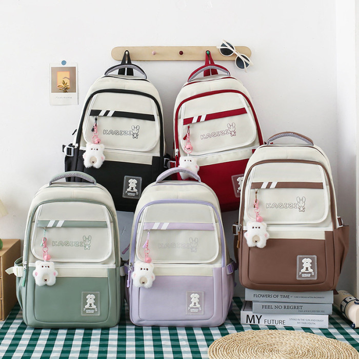 帆布休閒雙肩包大容量2025新款撞色學生書包實用多件套手提補課袋