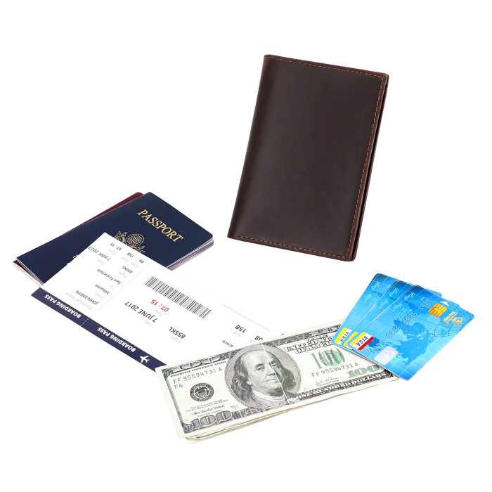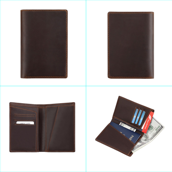 歐美新款瘋馬皮護照包証件包真皮卡包男士錢包RFID防盜刷旅行皮夾