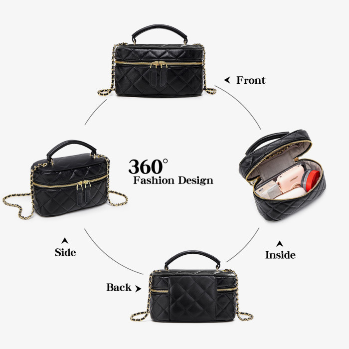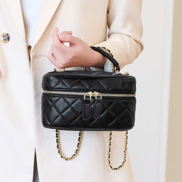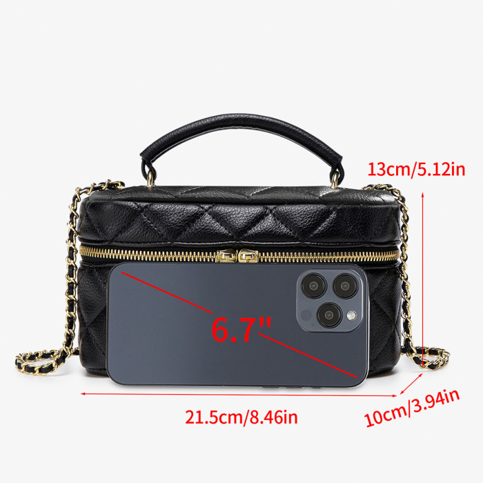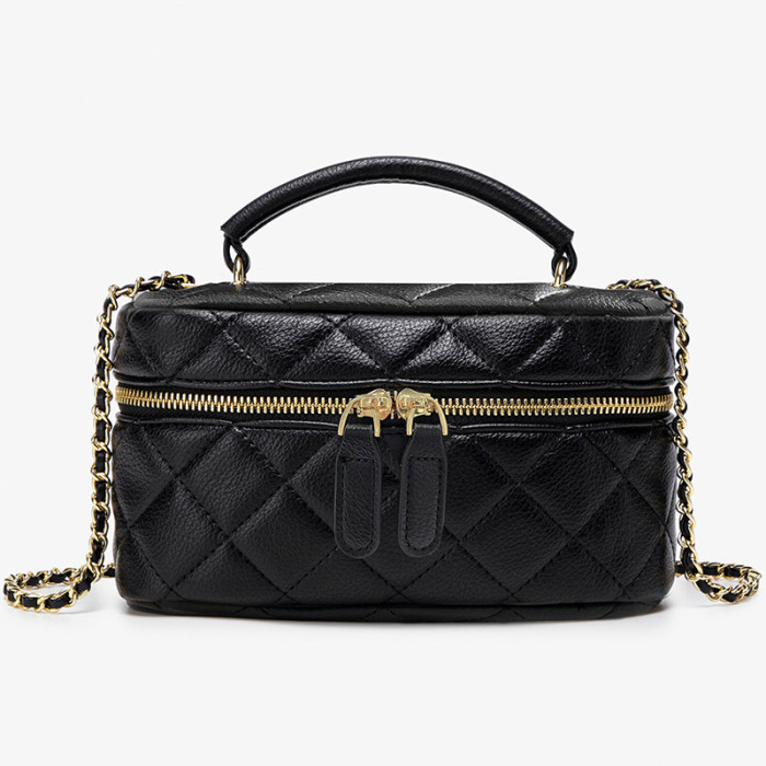 新款小香風菱格鏈條小方包時尚大容量單肩斜後背包百搭手提包