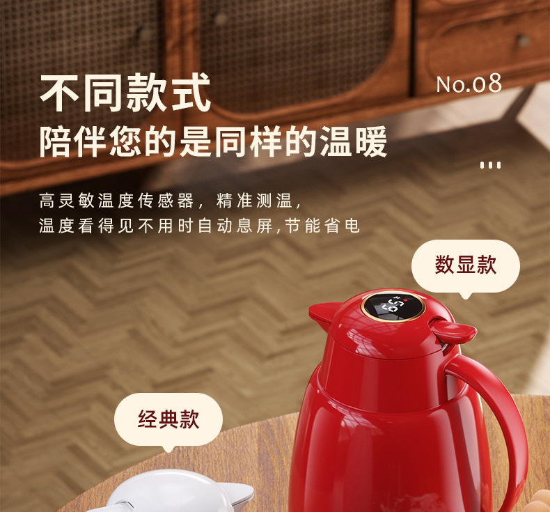 保溫壺家用結婚陪嫁大容量玻璃內膽高檔可攜式宿舍熱水瓶紅色暖水壺