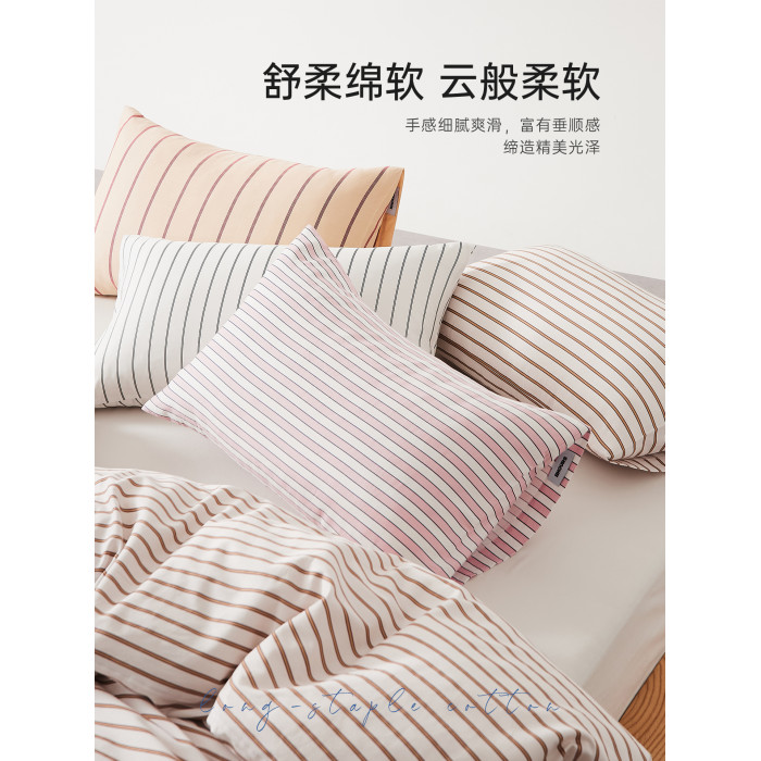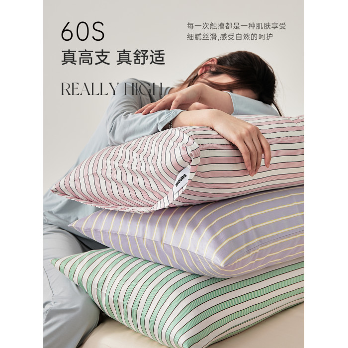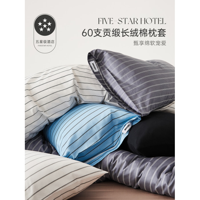 五星級酒店60支長絨棉枕頭套全棉純棉北歐極簡風質感條紋枕套一對
