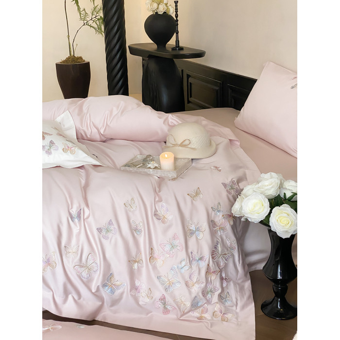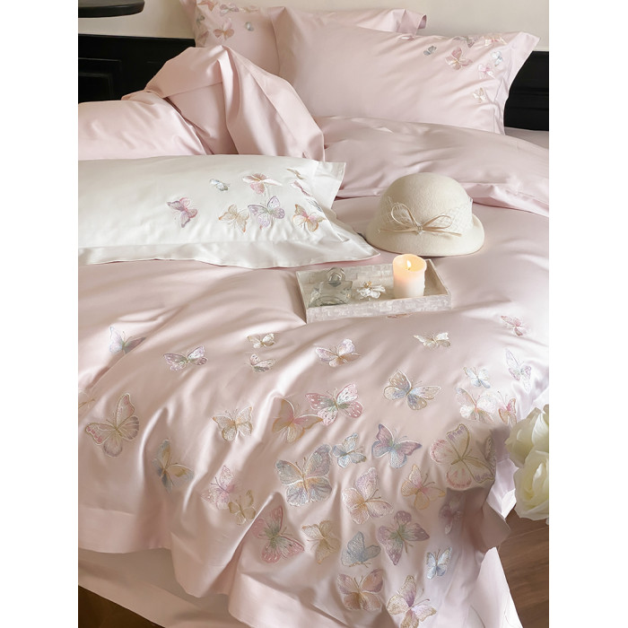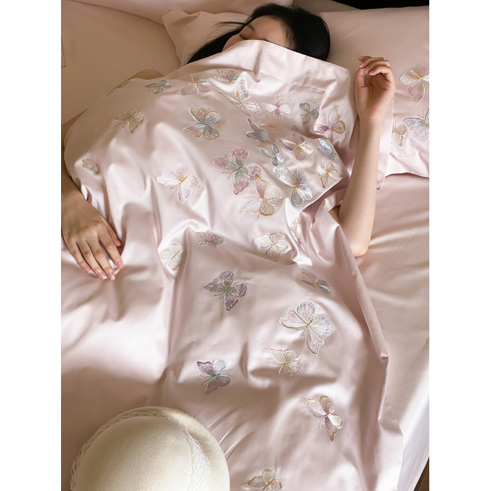 高級感200支純棉長絨棉被套單件蝴蝶刺綉四件套全棉被罩床上用品