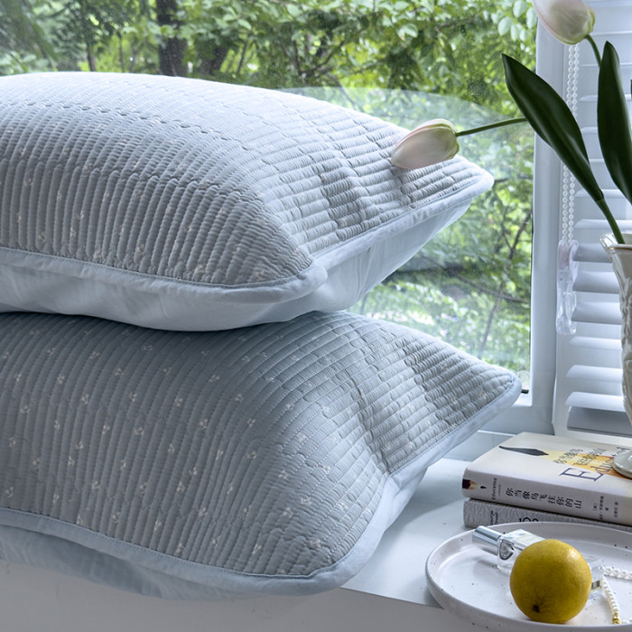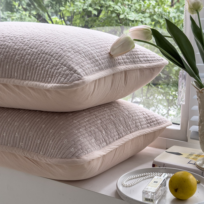 韓國全棉枕套1對雙面純棉枕頭套四季絎縫夾棉單人枕芯套子48x74
