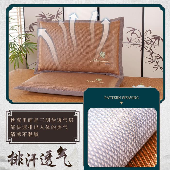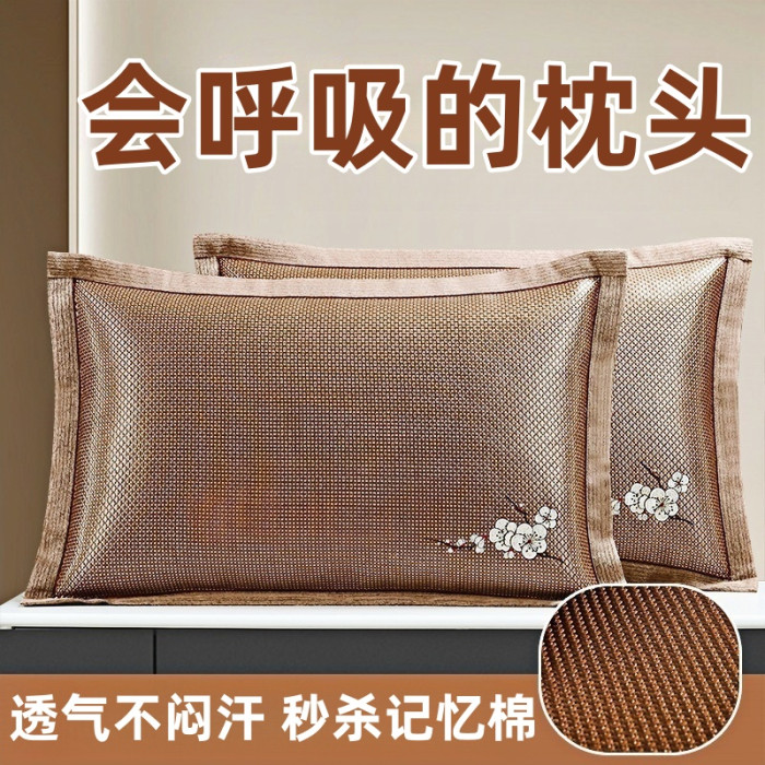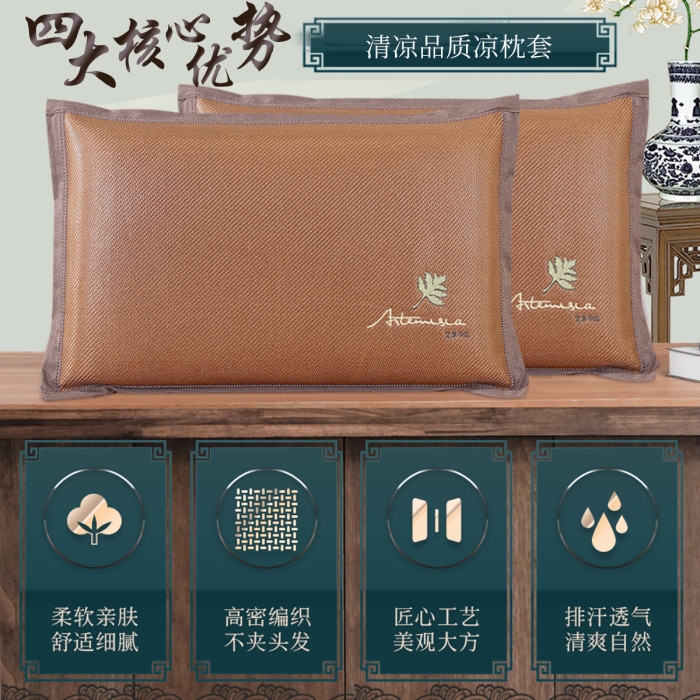 夏季涼蓆枕套成人家用冰藤絲枕芯套學生宿舍單人涼爽竹枕蓆枕頭套