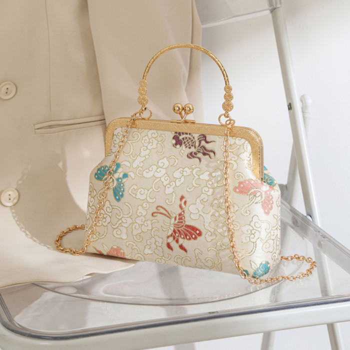 女包新款2025春夏斜後背包蝴蝶圖案高級感新中式國風包包晚裝包