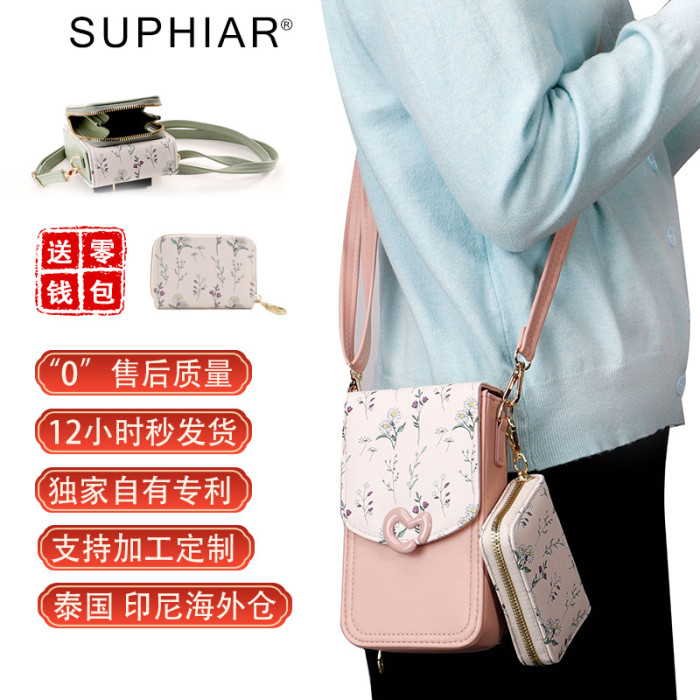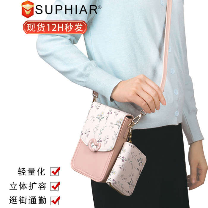 竪款手機零錢包帶小包多層手機包花朵簡約多功能手機包包斜後背包女