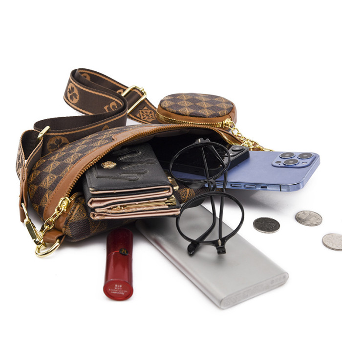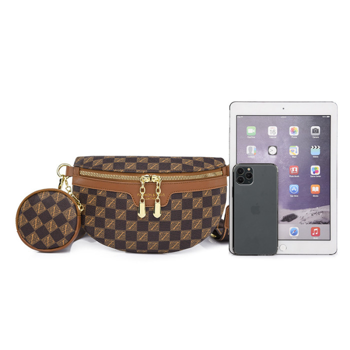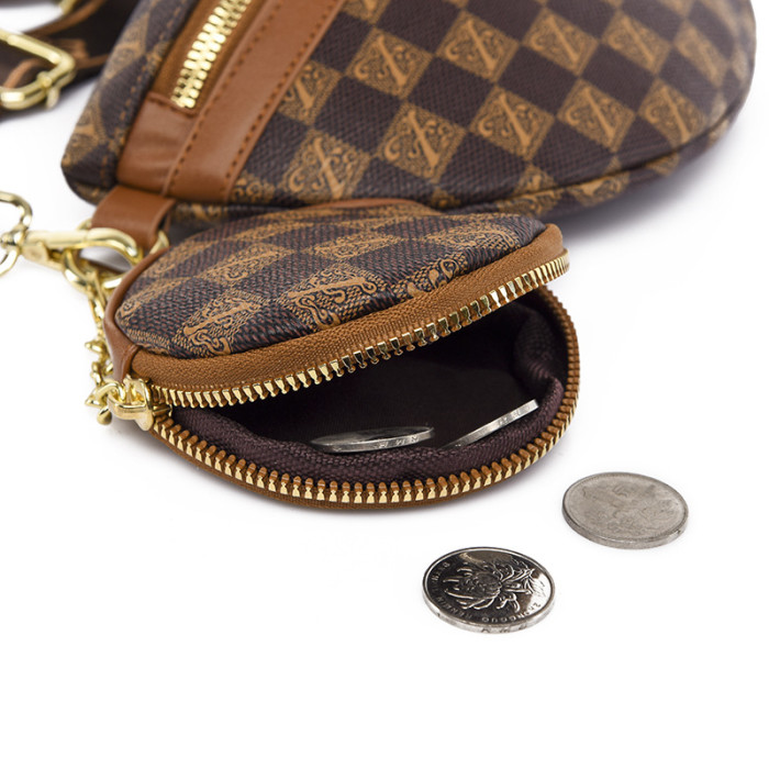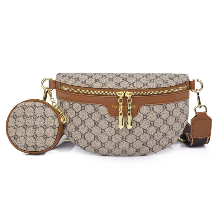 女胸包歐美風復古老花腰包單肩包寬肩帶斜背女包帶零錢掛件包