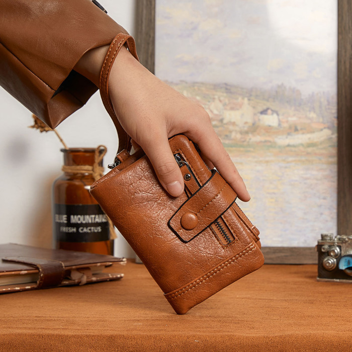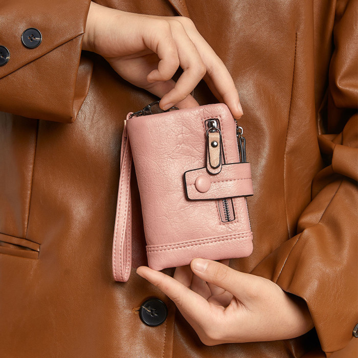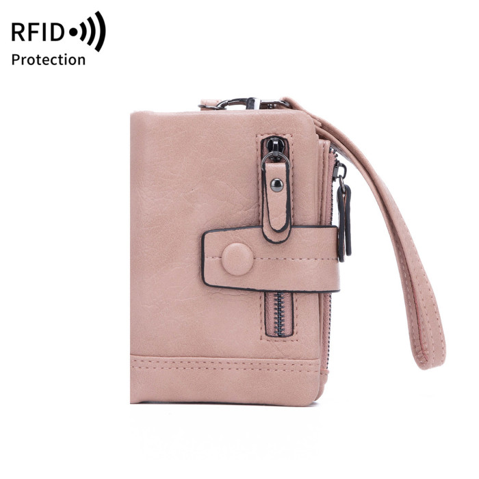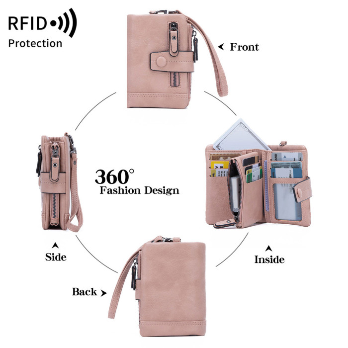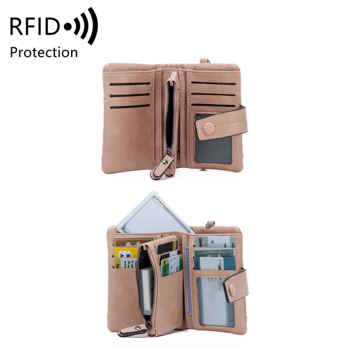 RFID女士錢包新款韓版多功能三折短錢包零錢包時尚拉鍊搭釦手拿包