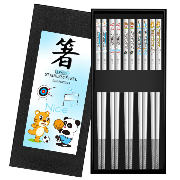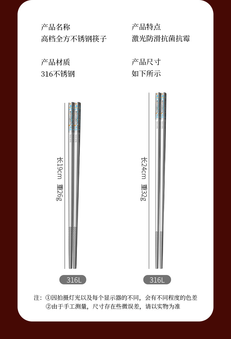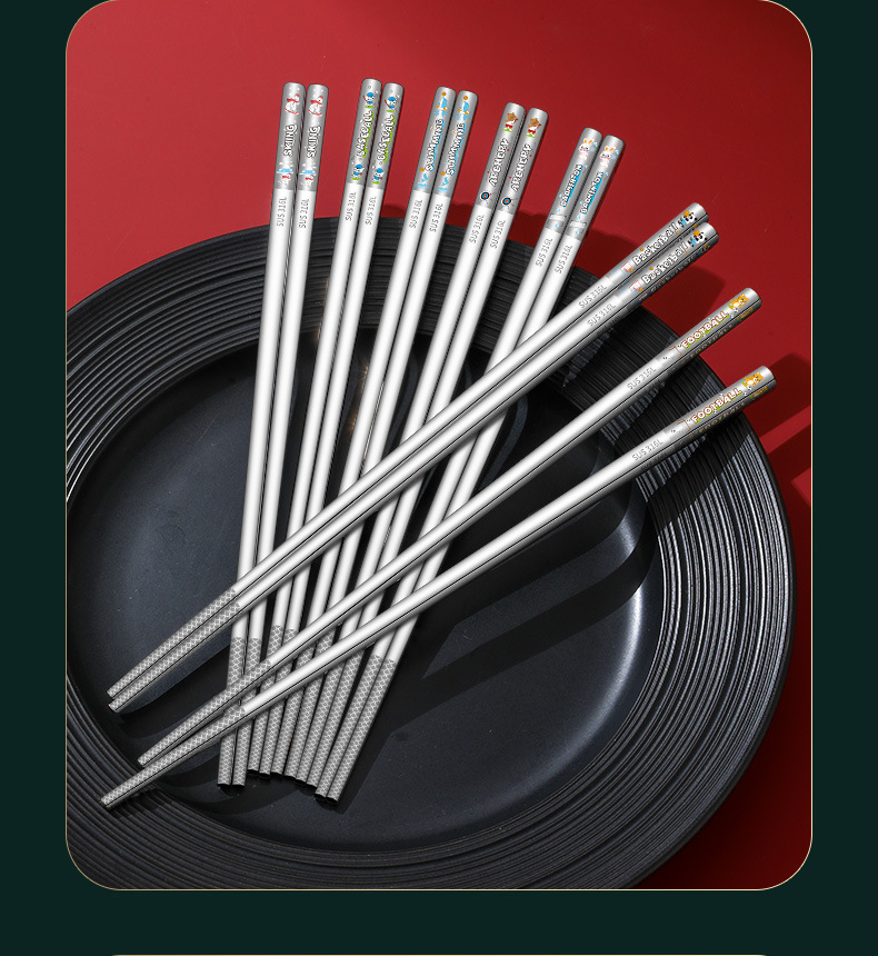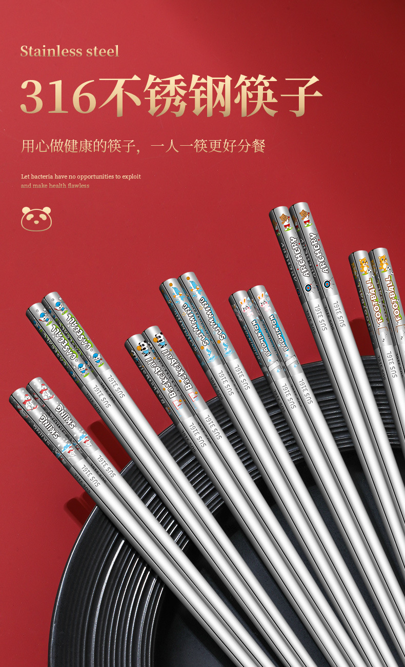 316L不鏽鋼筷子 創意新款家用分餐一人一筷彩雕不掉色兒童筷