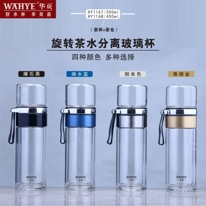 旋轉茶水分離玻璃杯雙層隔熱網紅水晶杯簡約泡茶杯子男女可攜式水杯