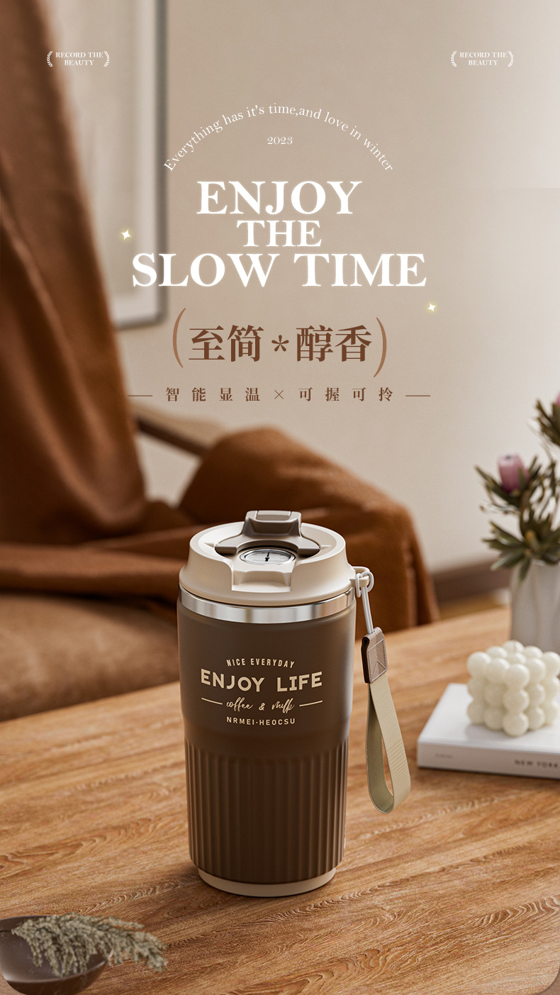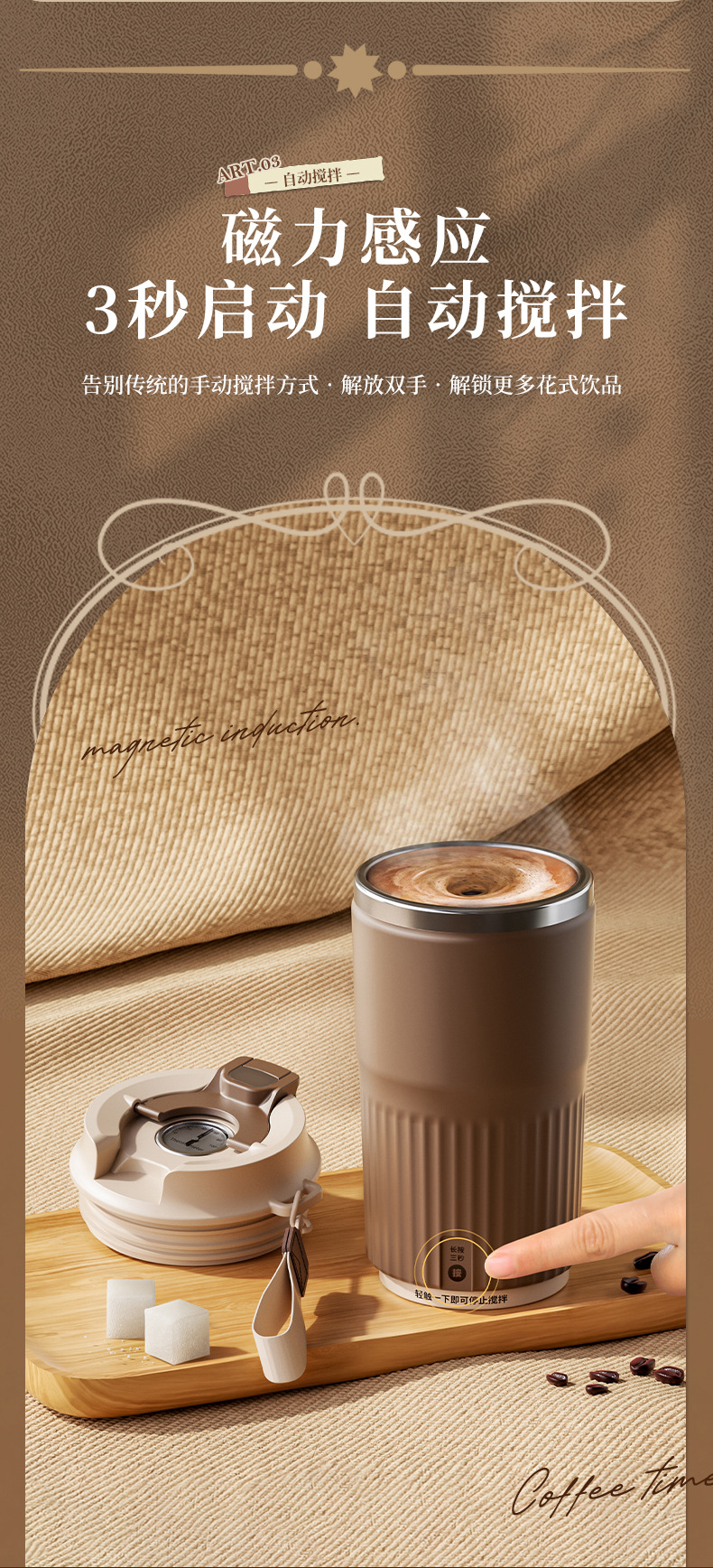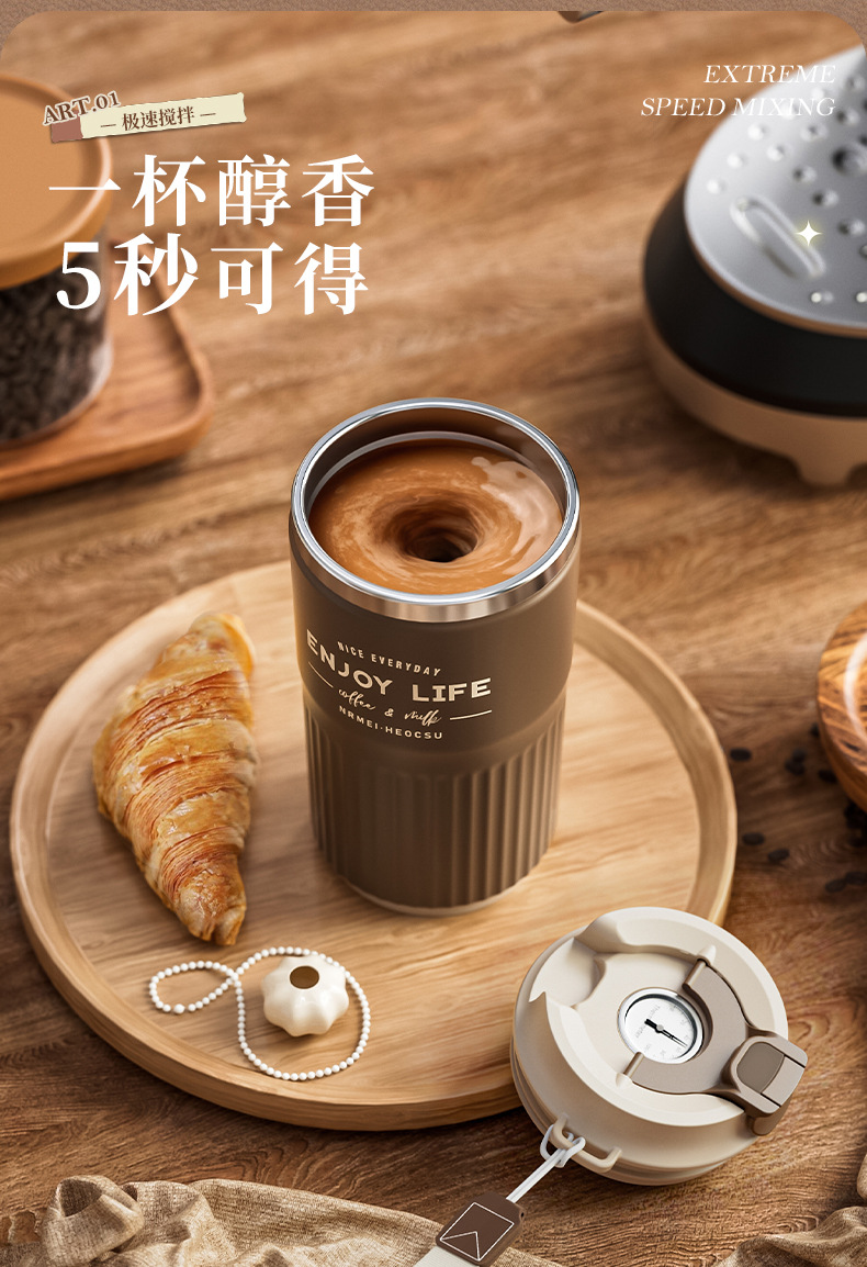 恩爾美全自動磁吸攪拌杯智能顯溫咖啡杯辦公車用可攜式高顔值水杯子