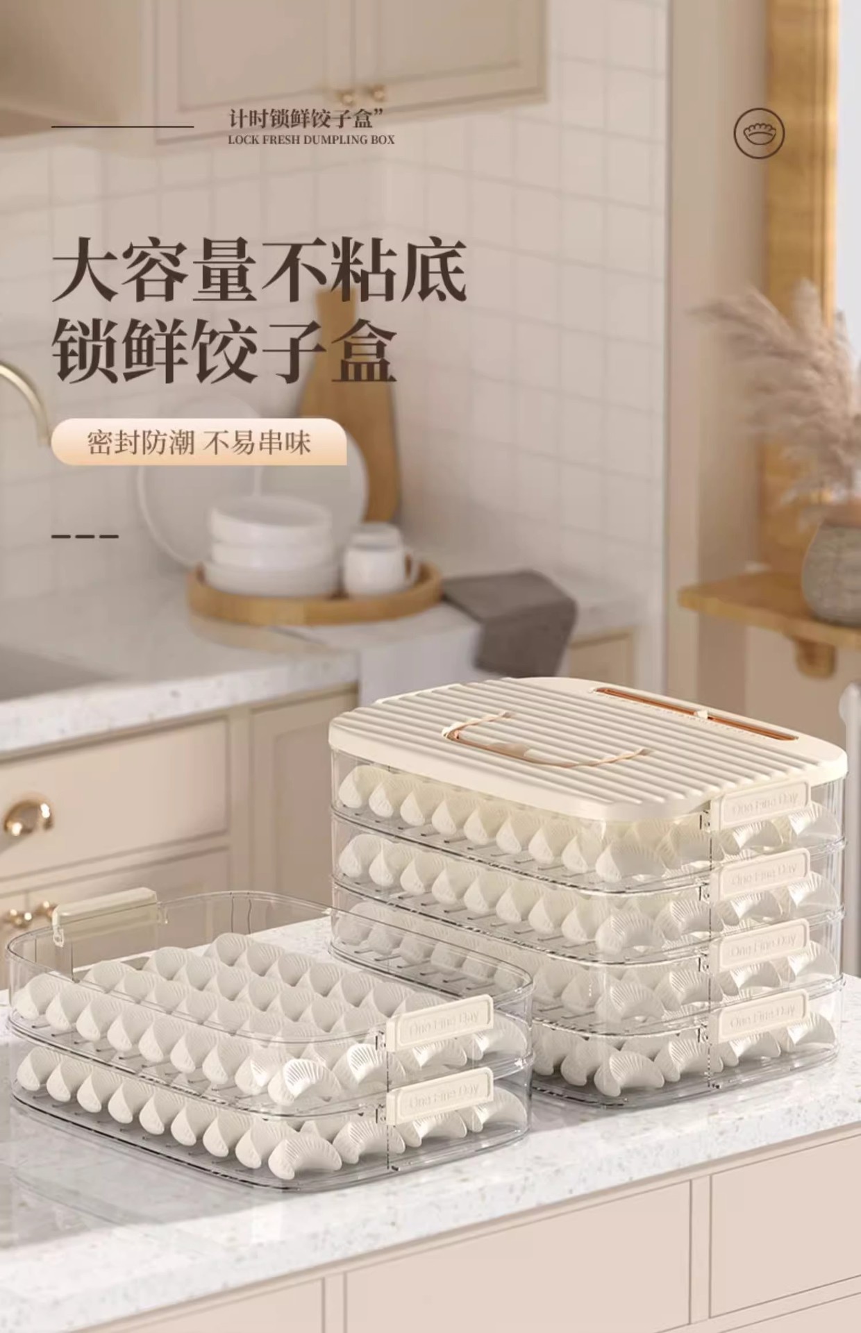 餃子盒家用大容量冷凍保鮮盒冰箱收納多層帶計時冷凍盒餃子收納盒
