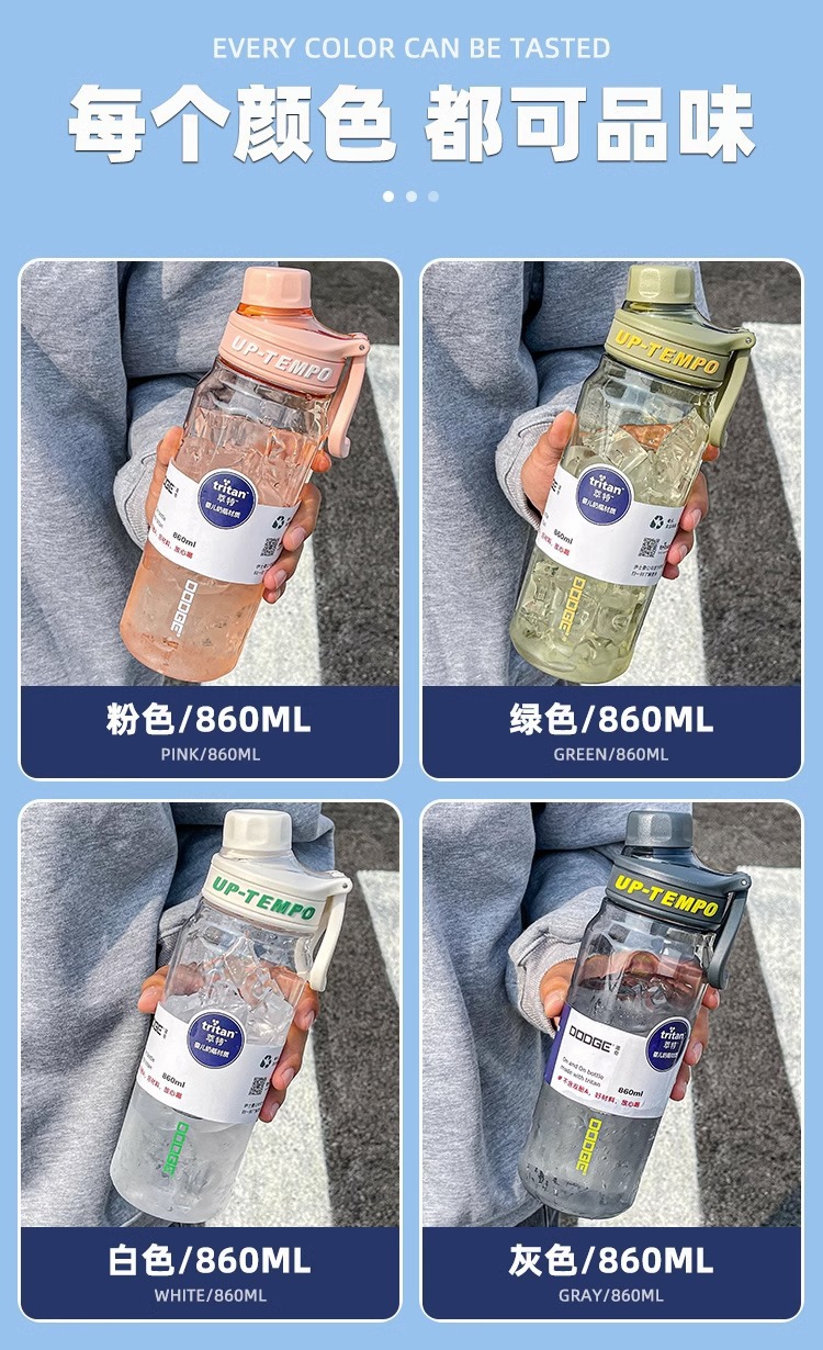 道奇得心塑膠杯太空杯運動大容量水杯簡約學生軍訓可攜式水壺tritan