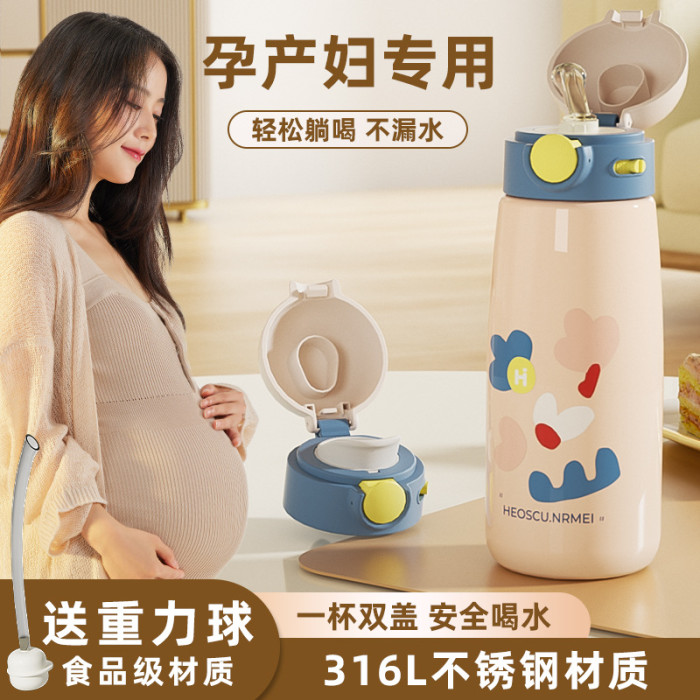 316L不鏽鋼吸管保溫水杯子女士孕婦專用成人嬰幼兒童新款漂亮可攜式