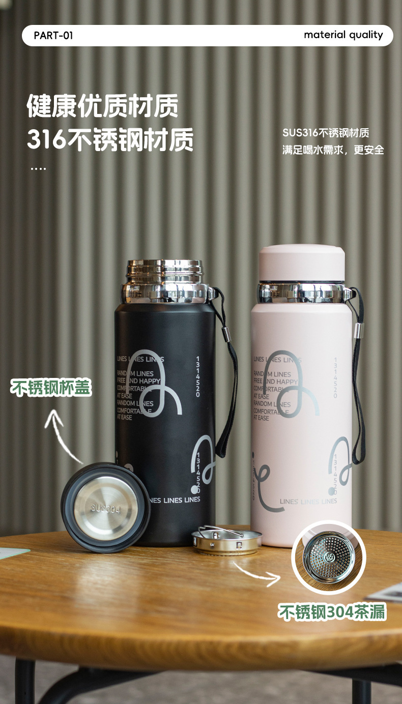 大容量背帶運動保溫杯子可攜式隨行雙飲旅行喝水保溫杯杯學生大肚壺
