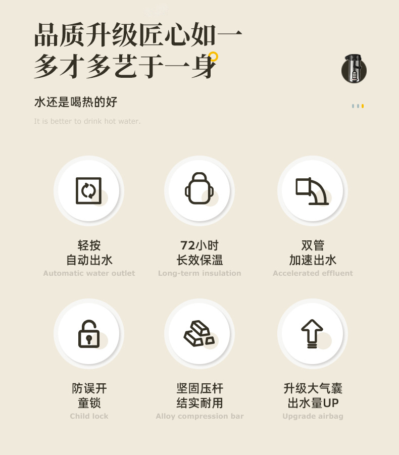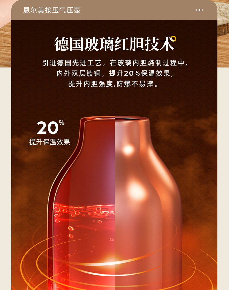 德國紅膽按壓式保溫壺家用氣壓式開水壺大容量不鏽鋼暖壺可攜式