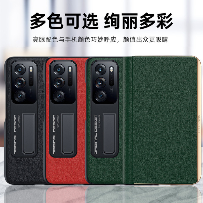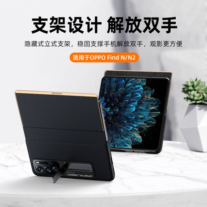 適用OPPOFindN皮套手機殼真皮超薄支架皮折曡findn2納帕紋保護殼