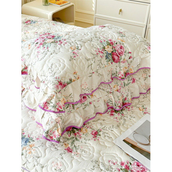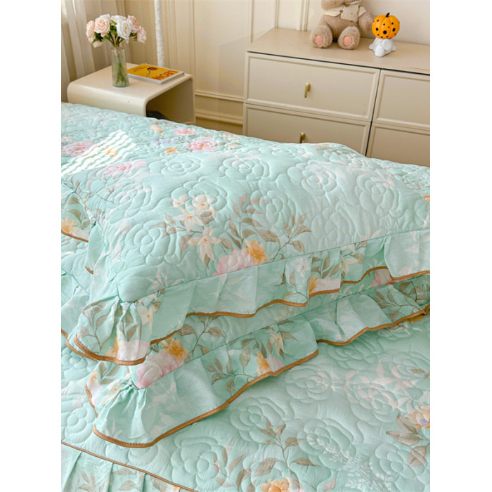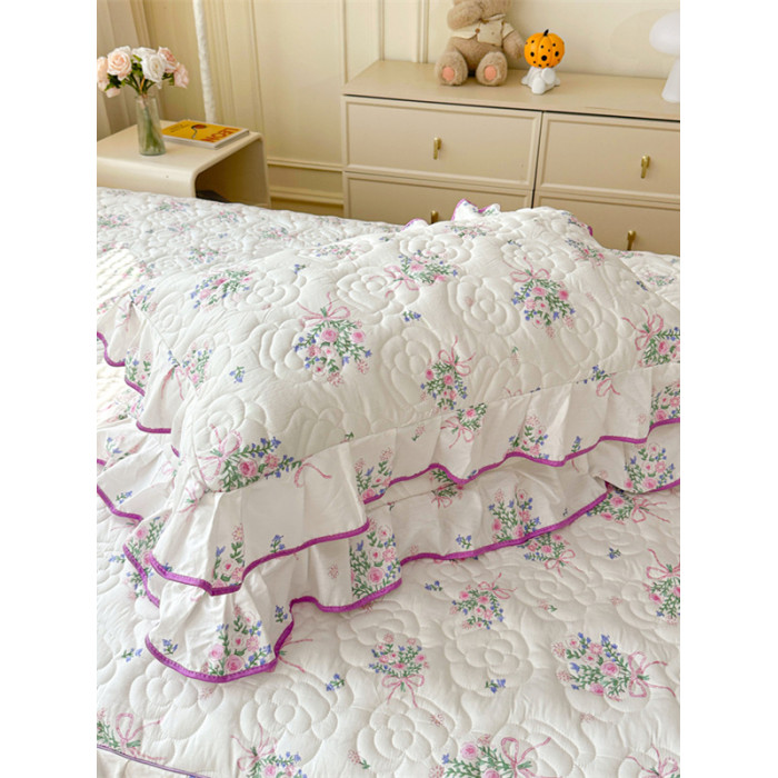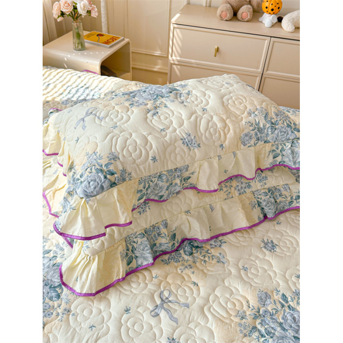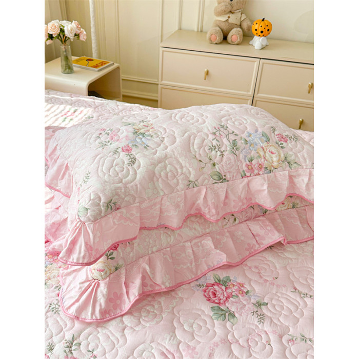 全棉夾棉加厚枕套純棉田園風荷葉花邊枕頭套48x74cm一對裝枕芯罩