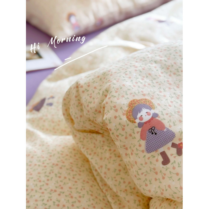軟糯可愛碎花女孩A類全棉雙層紗被套純棉宿舍單雙人被罩四件套1.8