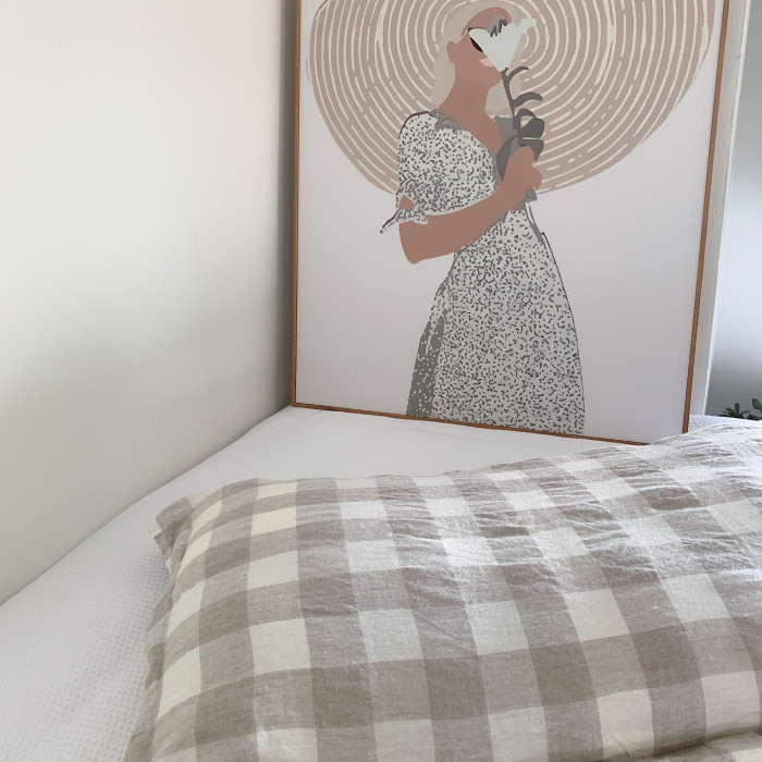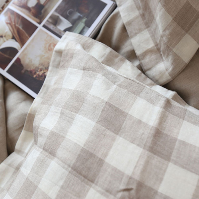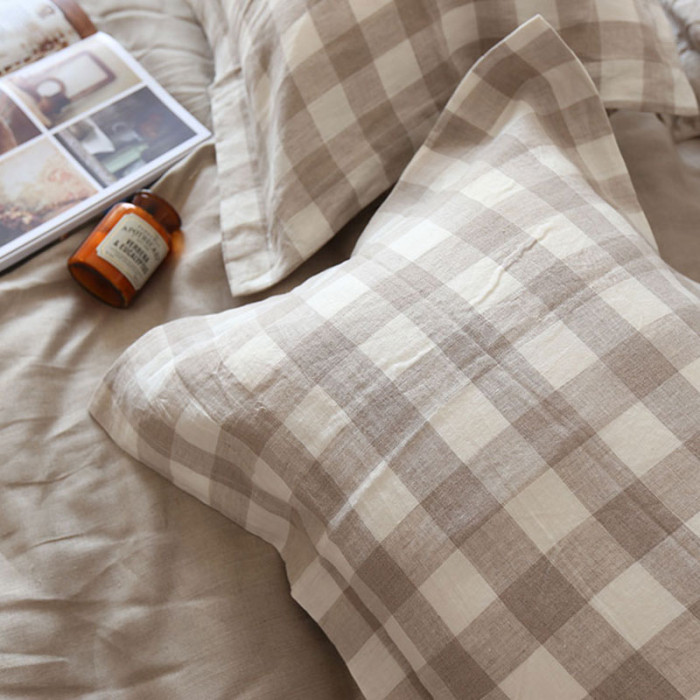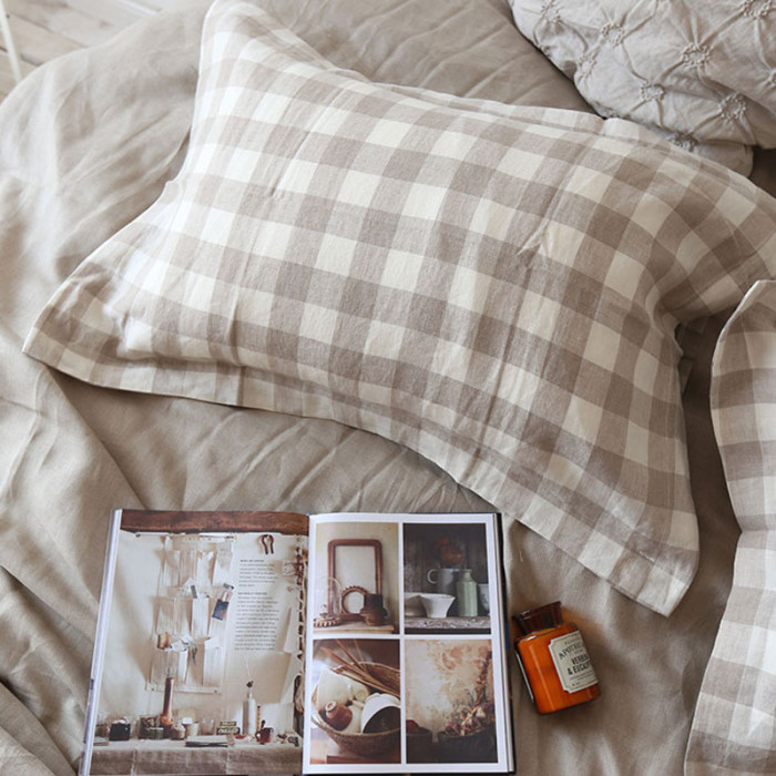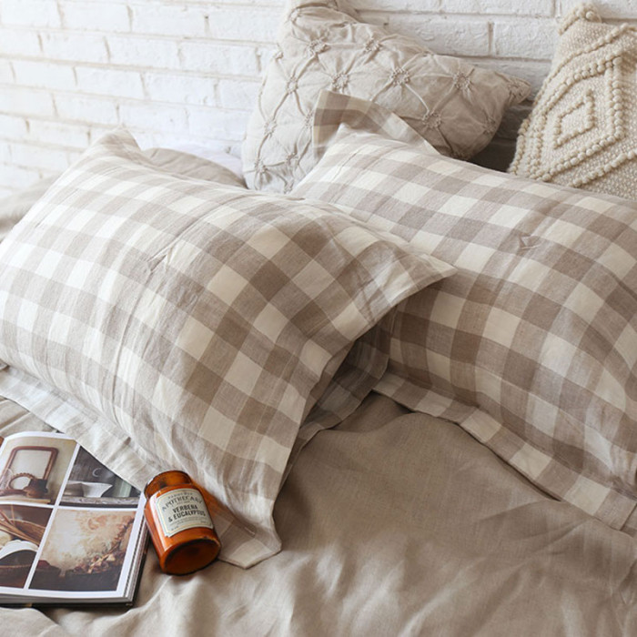 純亞麻大格紋枕頭套,不含芯,信封枕樣式
