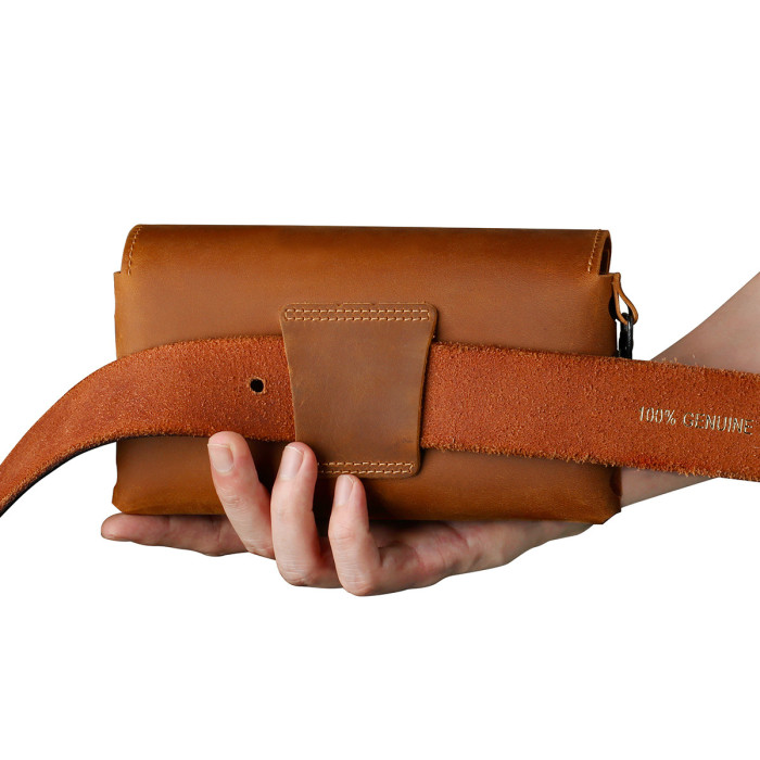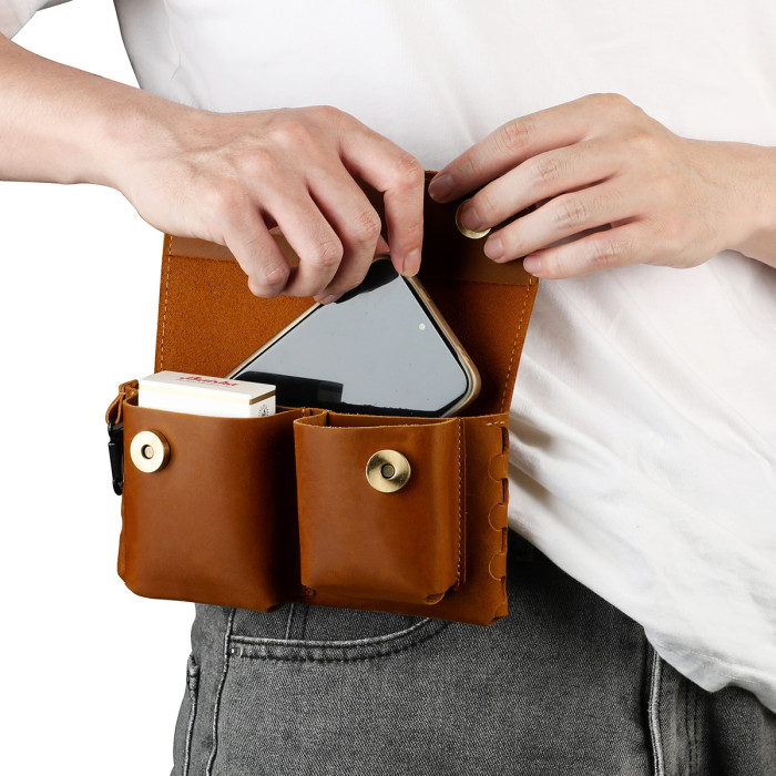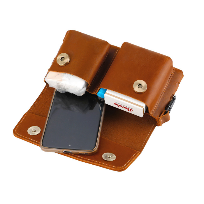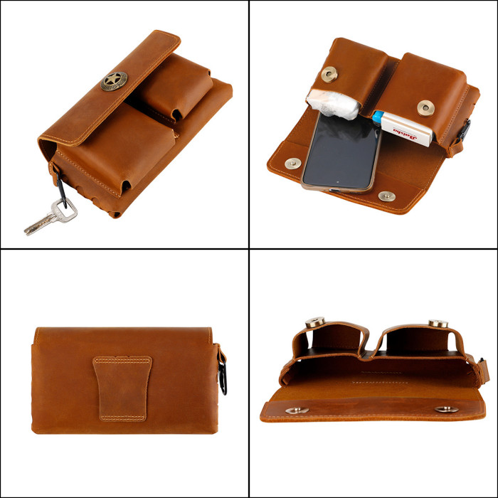 瘋馬皮新款腰掛通用手機包香菸打火機面巾紙耳機數據線收納包真皮