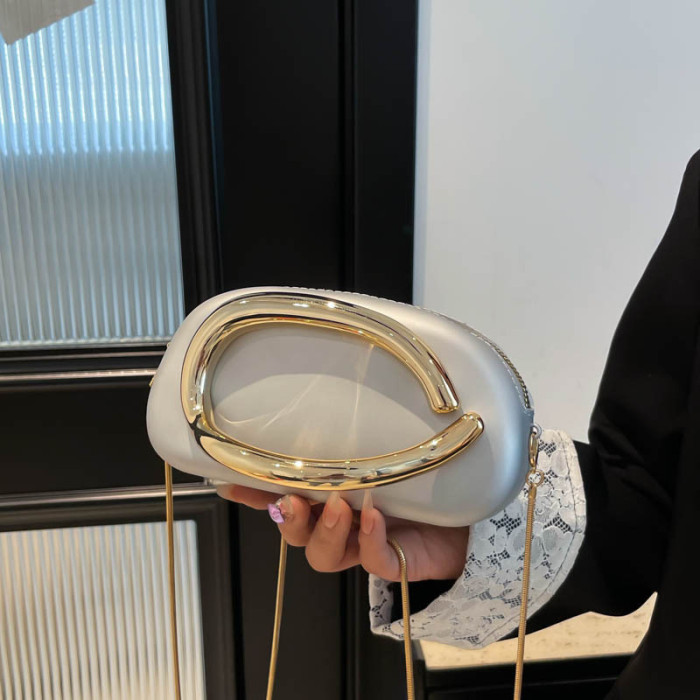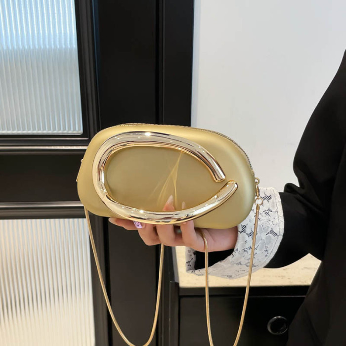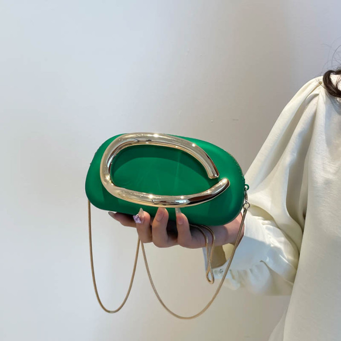 今年流行時尚氣質鏈條包晚宴包迷你包復古金屬提把鏈子單肩斜後背包