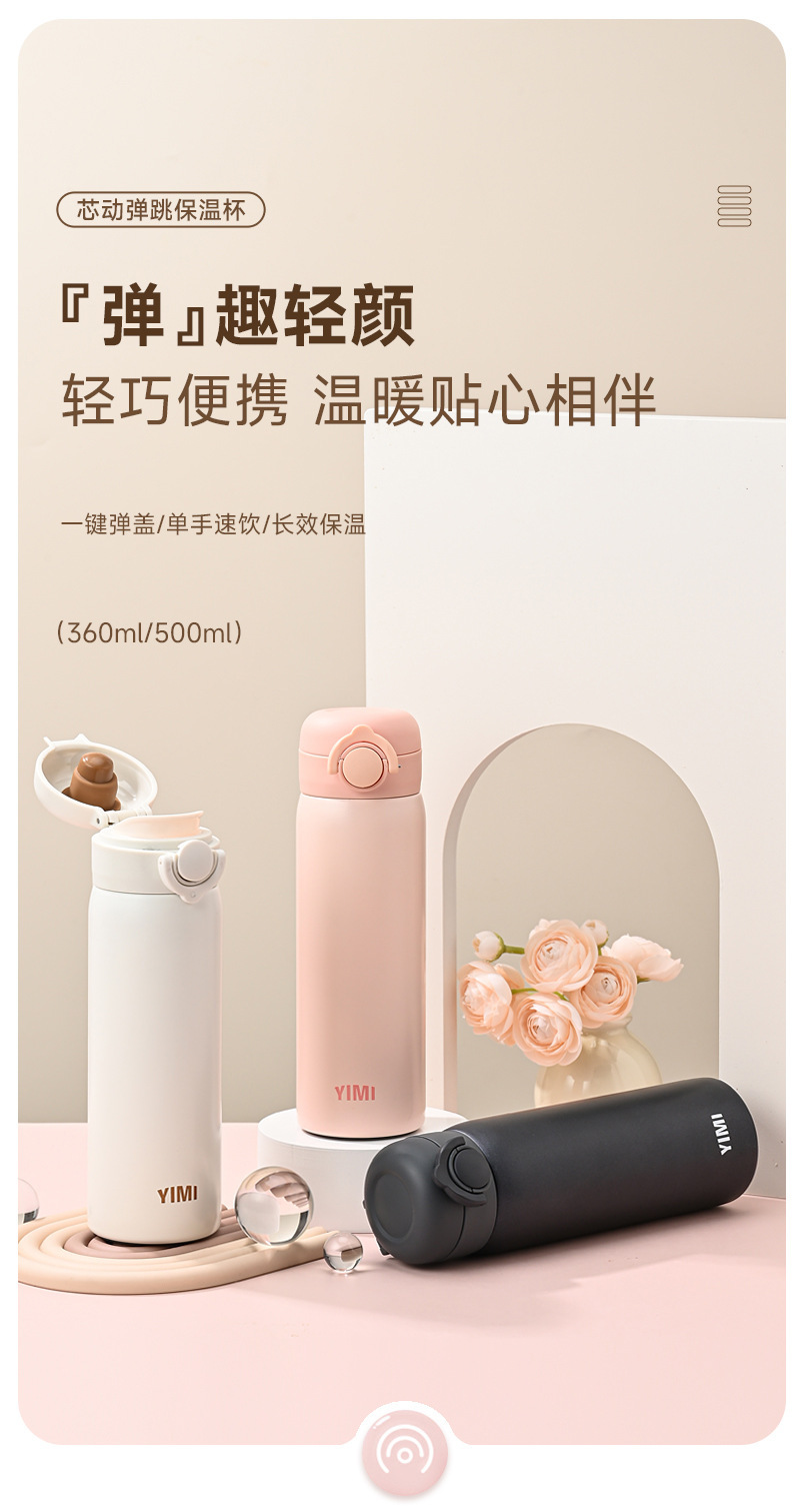 YIMI316內膽彈跳保溫杯高顔值簡約女生可攜式保溫馬卡龍杯
