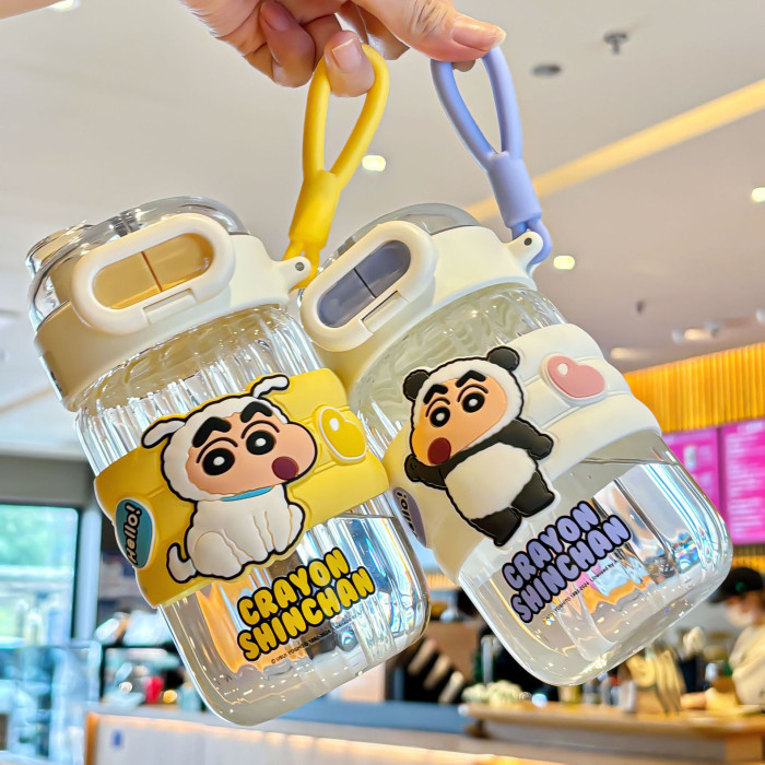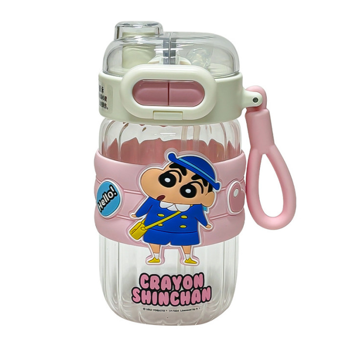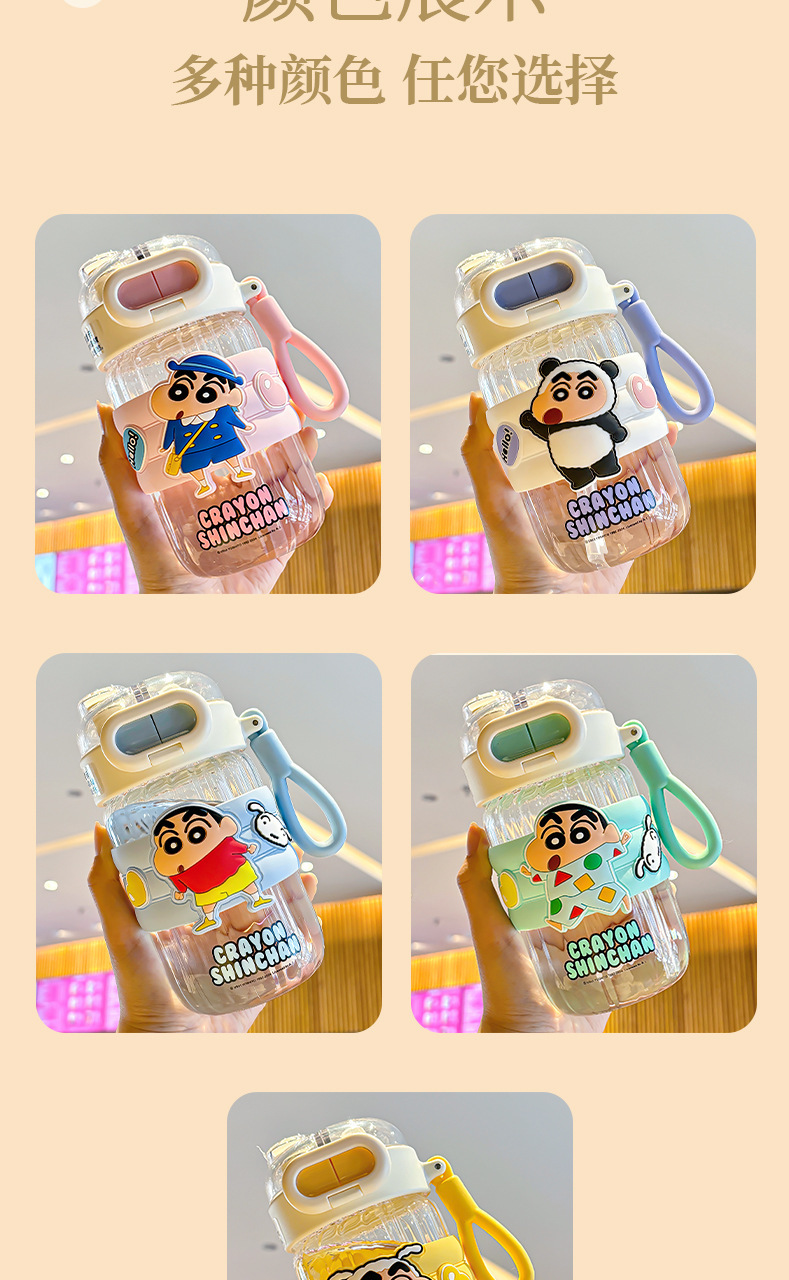 蠟筆小新系列眼鏡玻璃杯方可攜式帶堅固提環鎖扣設計自帶杯套飲水杯