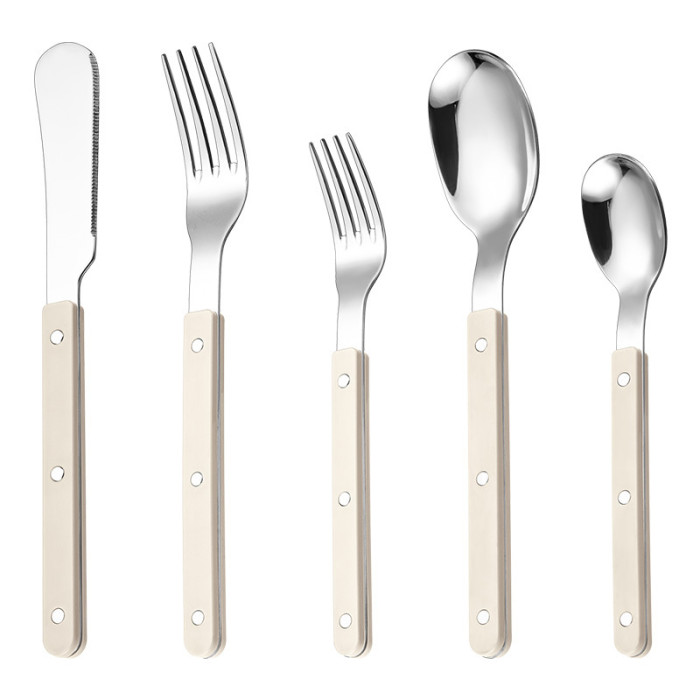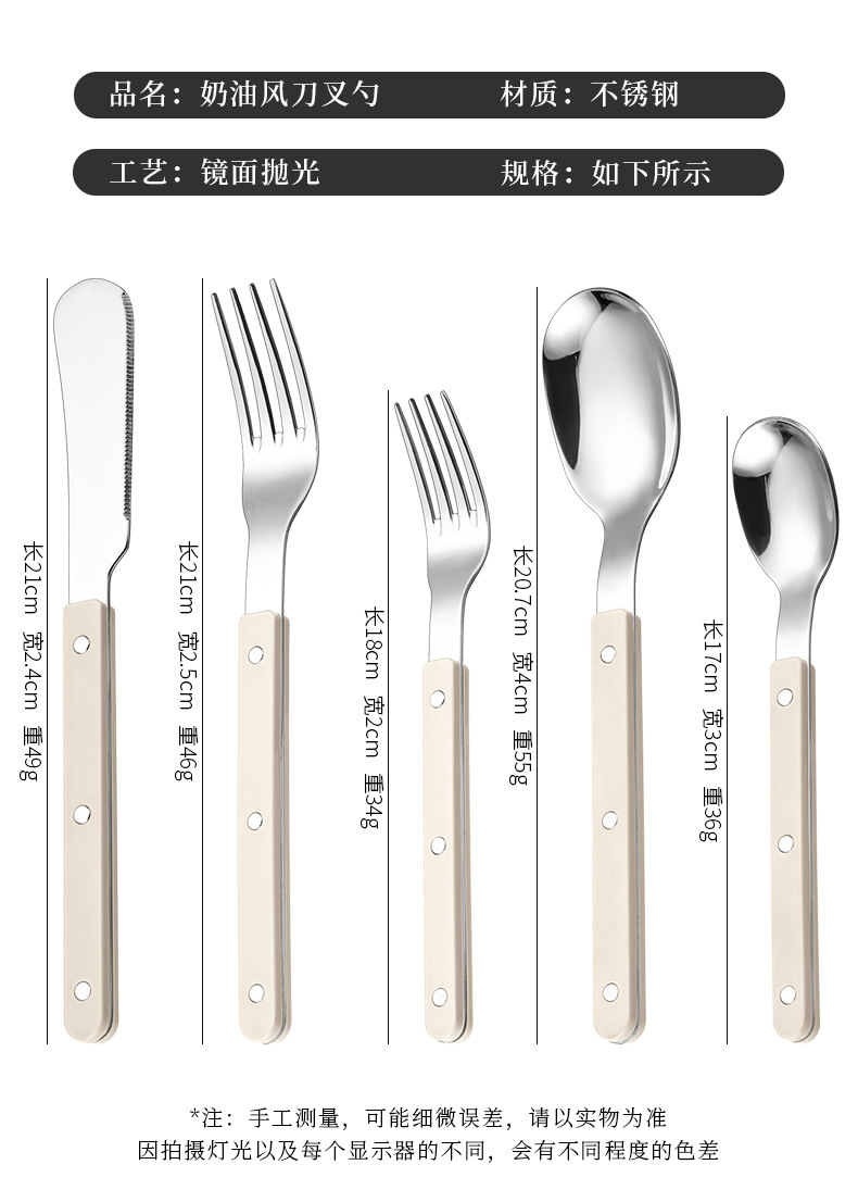 430不鏽鋼柳釘夾柄刀叉勺酒店餐具奶油風法式牛排刀甜品勺叉套裝