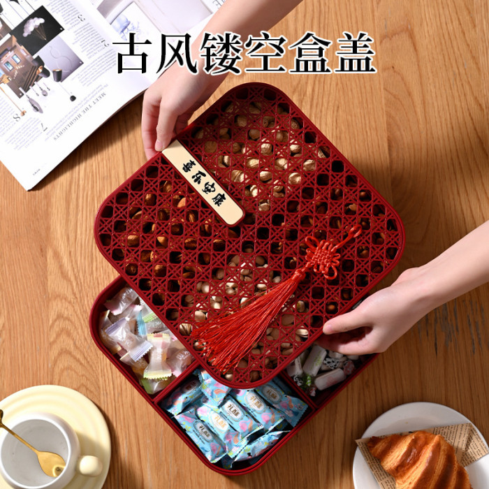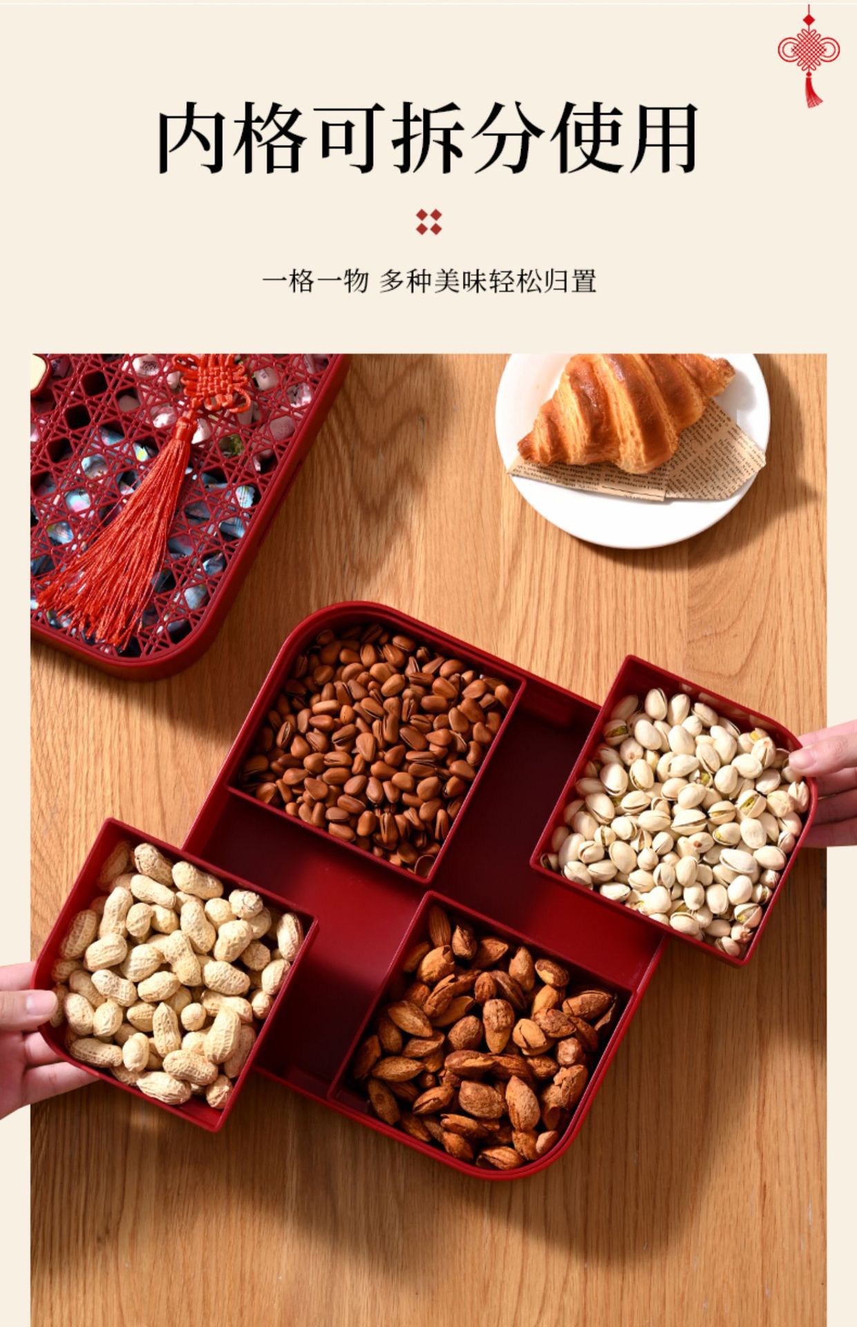 新年乾果盤家用客廳茶幾家用零食擺放盤高級精緻高顔值輕奢堅果盒