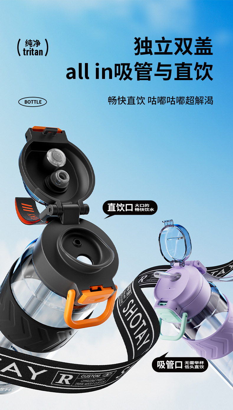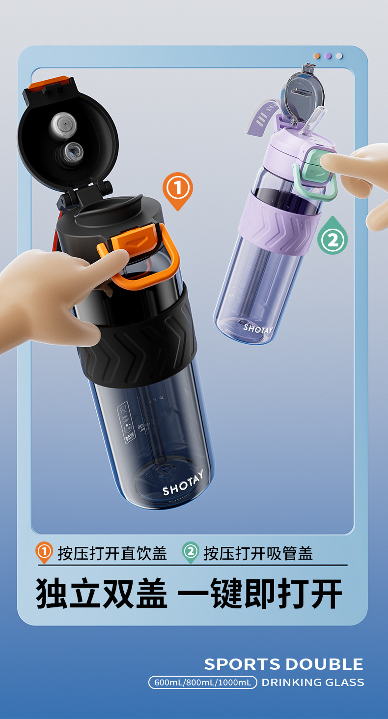 尚泰運動雙飲蓋塑膠水杯 高顔值塑膠杯彈跳蓋可攜式帶提手戶外運動
