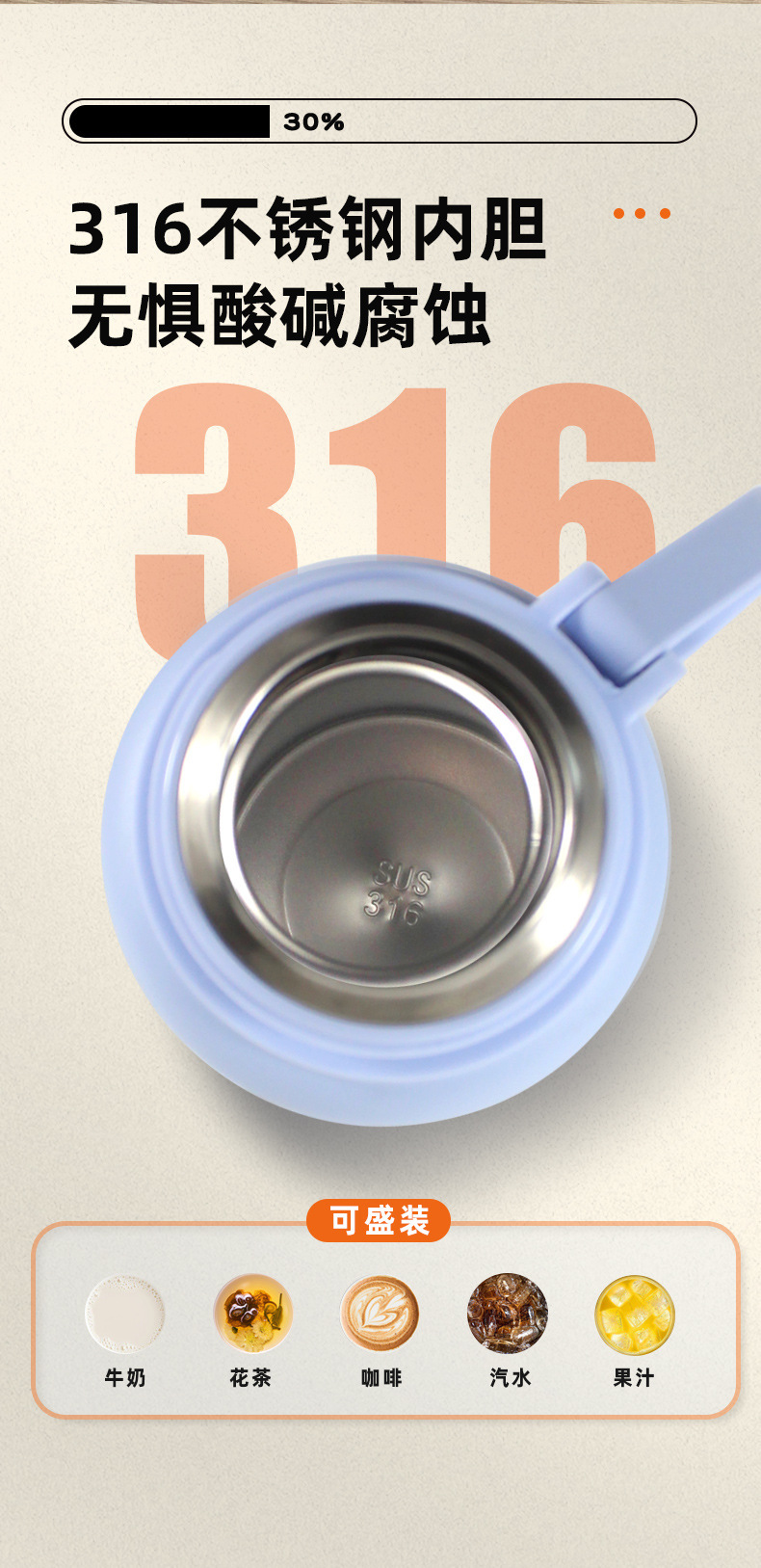 材質:內膽(316)/外殼201不鏽鋼+食品級矽膠PP