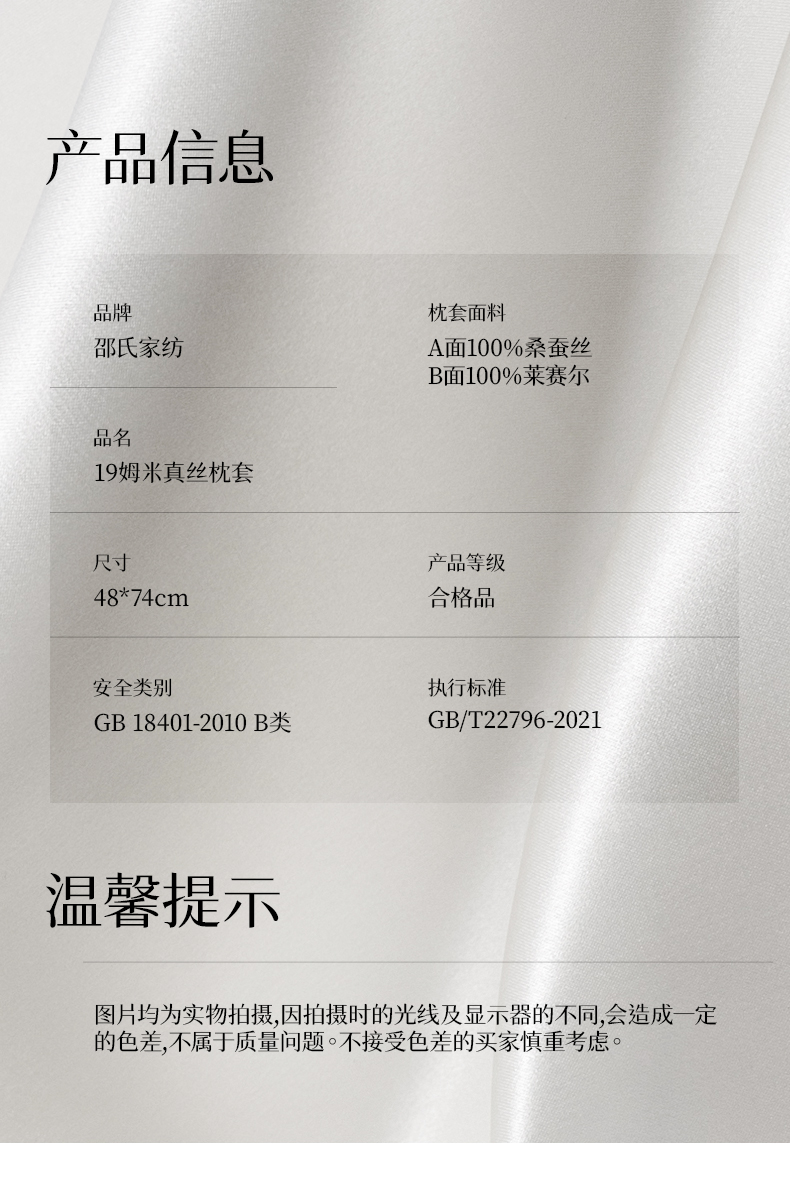 枕套A版:100%桑蠶絲 B版:100%萊賽爾