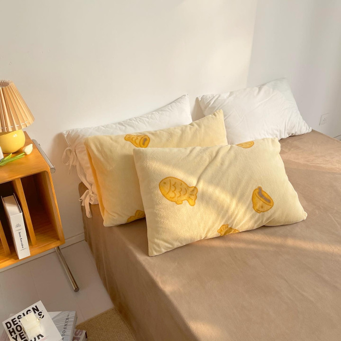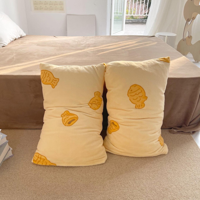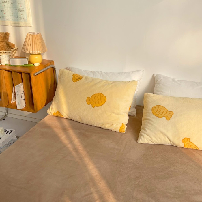 鯛魚燒|原創可愛日式奶油絨枕套絨面信封枕芯罩冬季溫暖毛絨單個