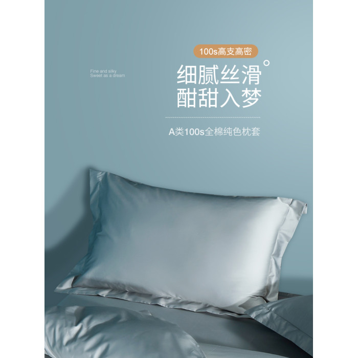 高級感100枕套純棉枕頭套加寬邊純色簡約枕罩單個家用乳膠枕套