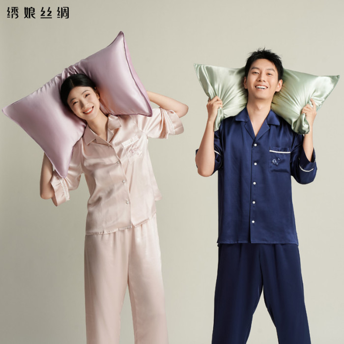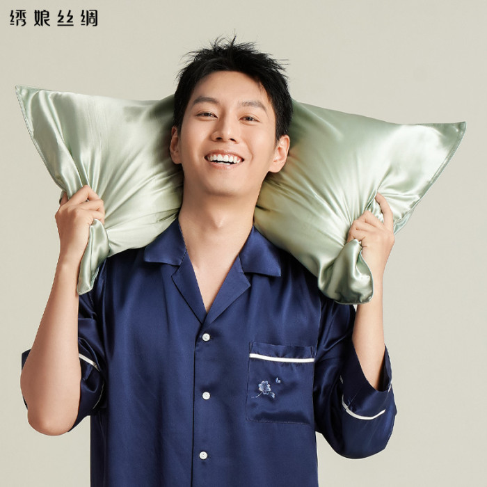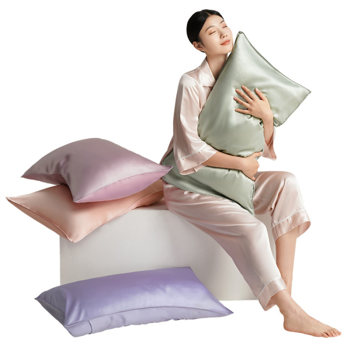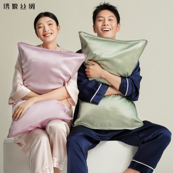 綉娘真絲枕套單面100%桑蠶絲潤滑細膩純色枕頭套單人素錦枕套
