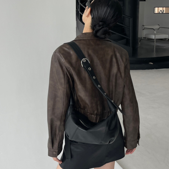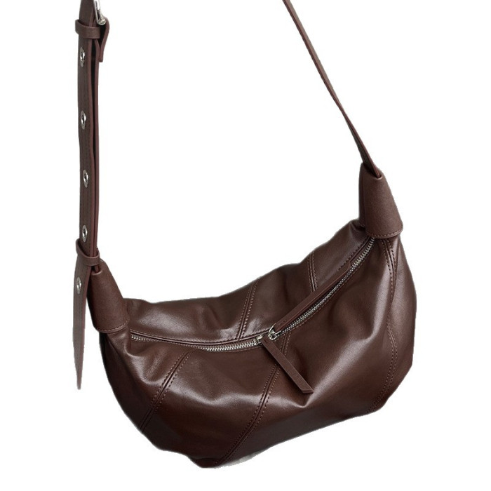 真皮女包復古百搭高級感可頌牛角包 大容量時尚小衆單肩斜背餃子包